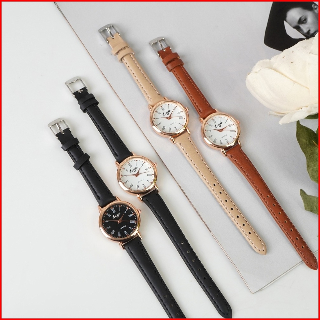 Loggio Jam Tangan Wanita Kulit Hitam Women Watches Bulat Kecil Terbaru Original Free Box