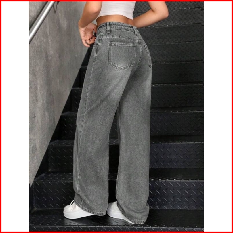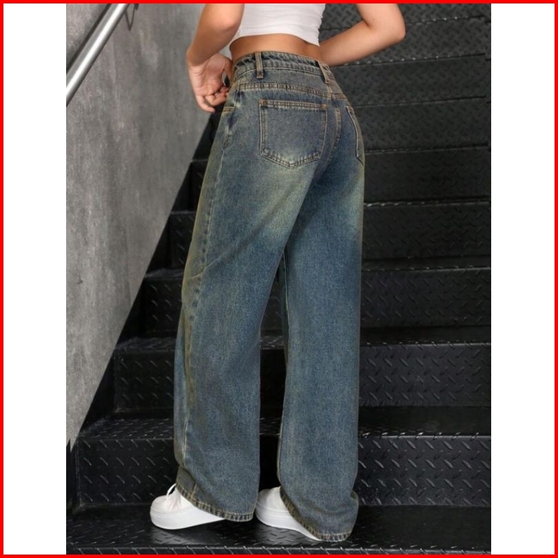 Celana Jeans Wanita High Waist Wide Leg Loose Fit Vintage Korea Streetwear Baggy Pants Kekinian