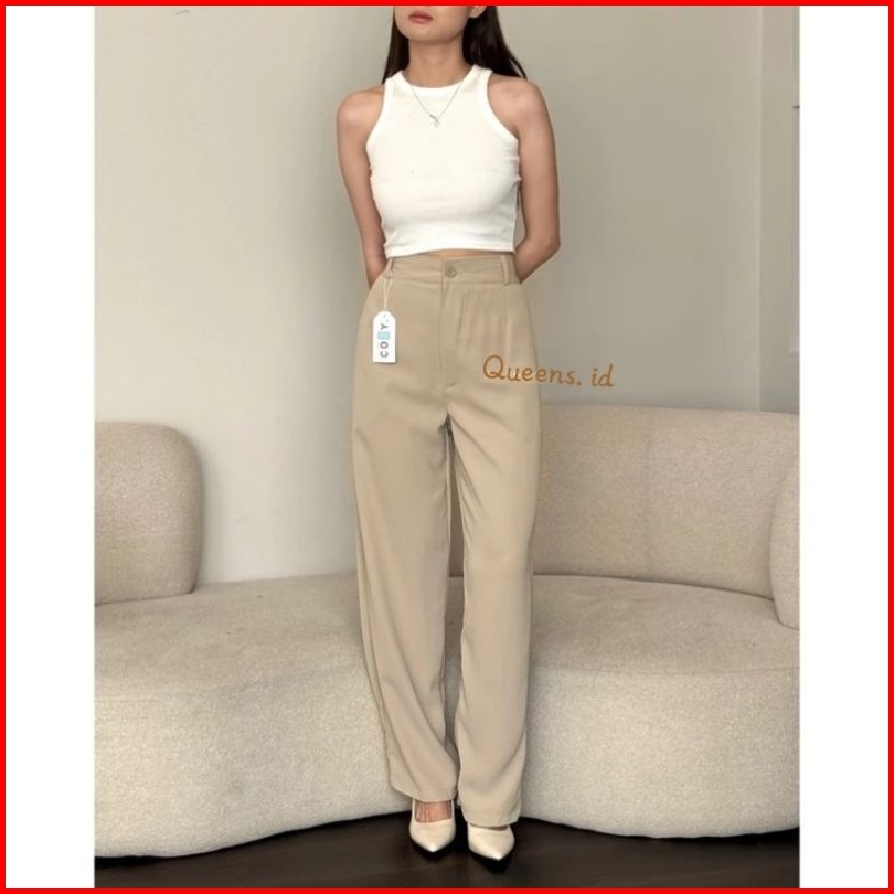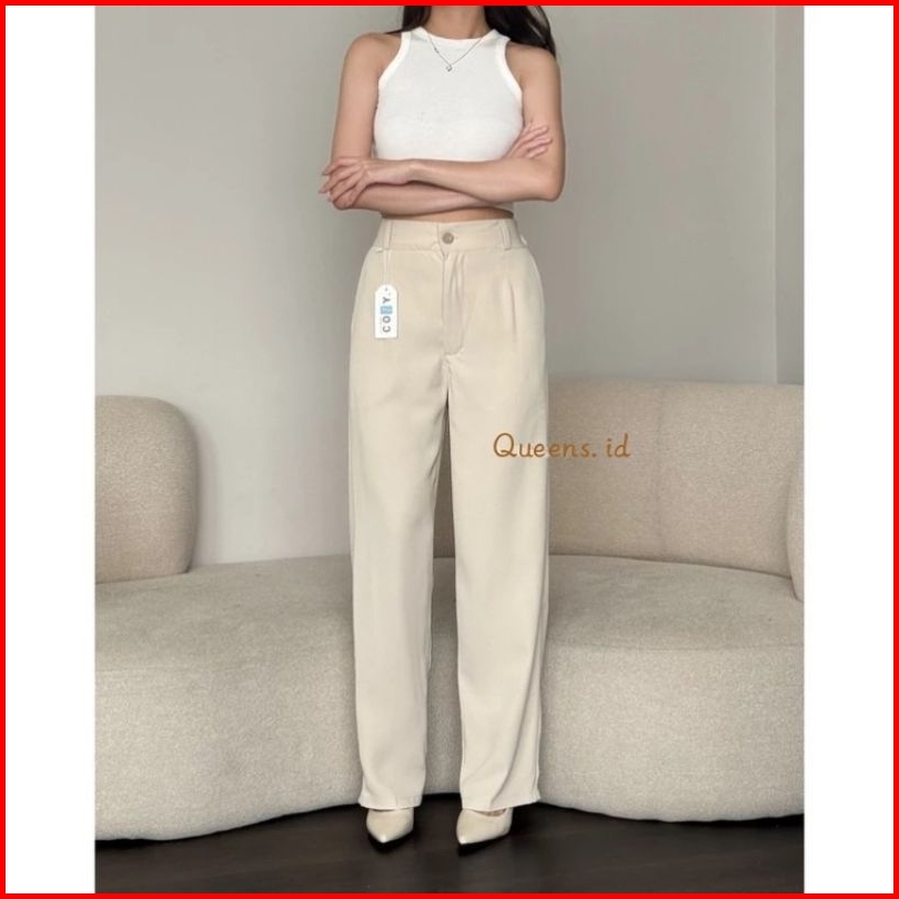 Loose Pants - Celana Highwaist Anti Kusut - Trousers Kantor Formal Casual Long Cullote Terbaru