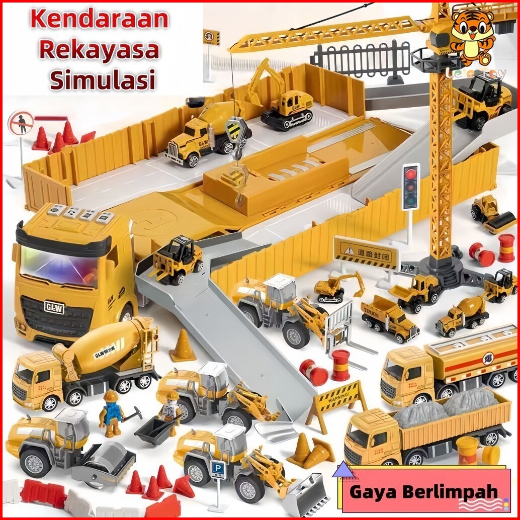 Lele Toys 1 55 Mainan Anak Truck Escavator Paduan Plastik Logam Penggilas Jalan Truk Tanker Truk Sampah Truk Dumper Truk