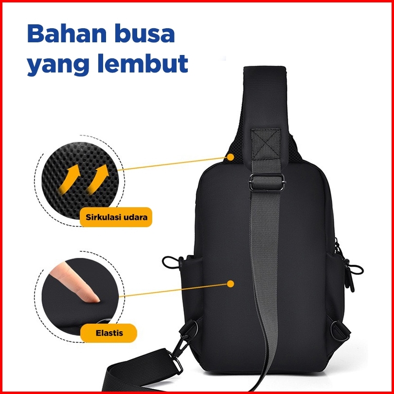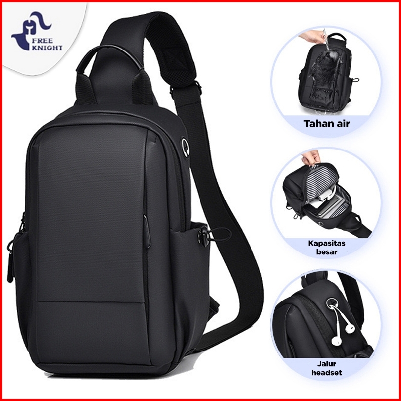 Freeknight Tas Selempang Pria Multifungsi Earphone Hole Sling Bag Cowok Casual Pu Leather Ts614
