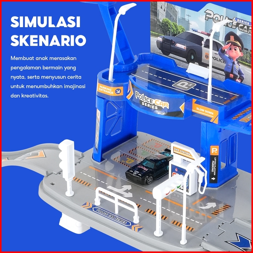 Ohsome - Yienle Mainan Mobil Anak Seri City Parking Lot - Mobil Konstruksi Pemadam - Arena Trek Mobil Diy Merakit Track
