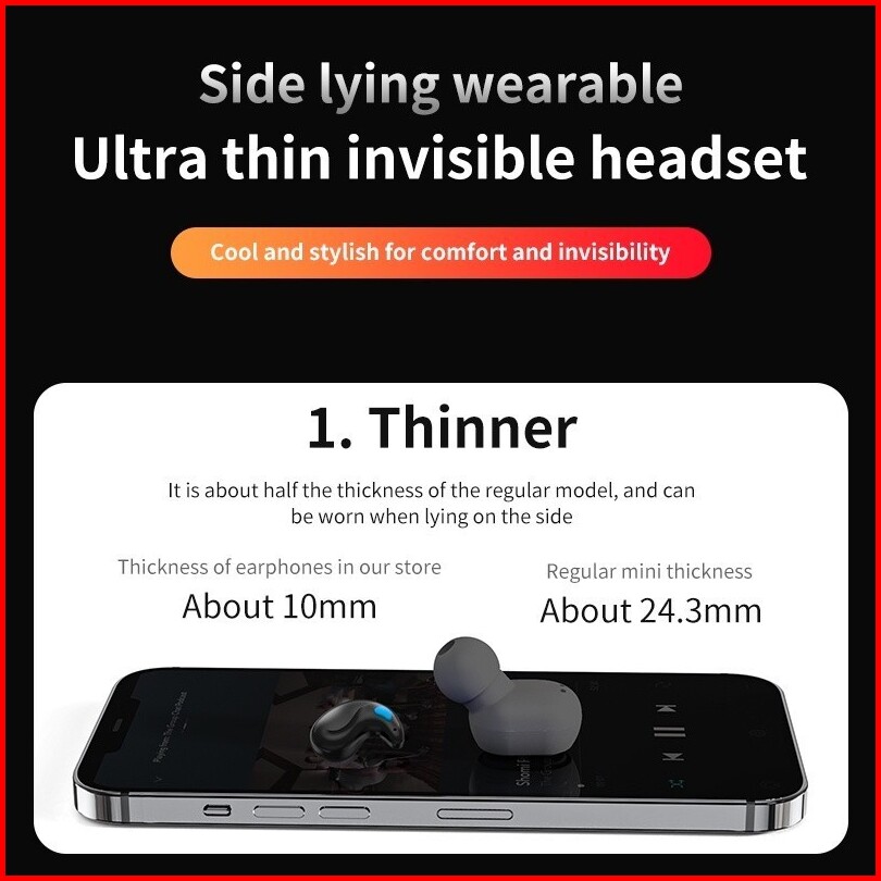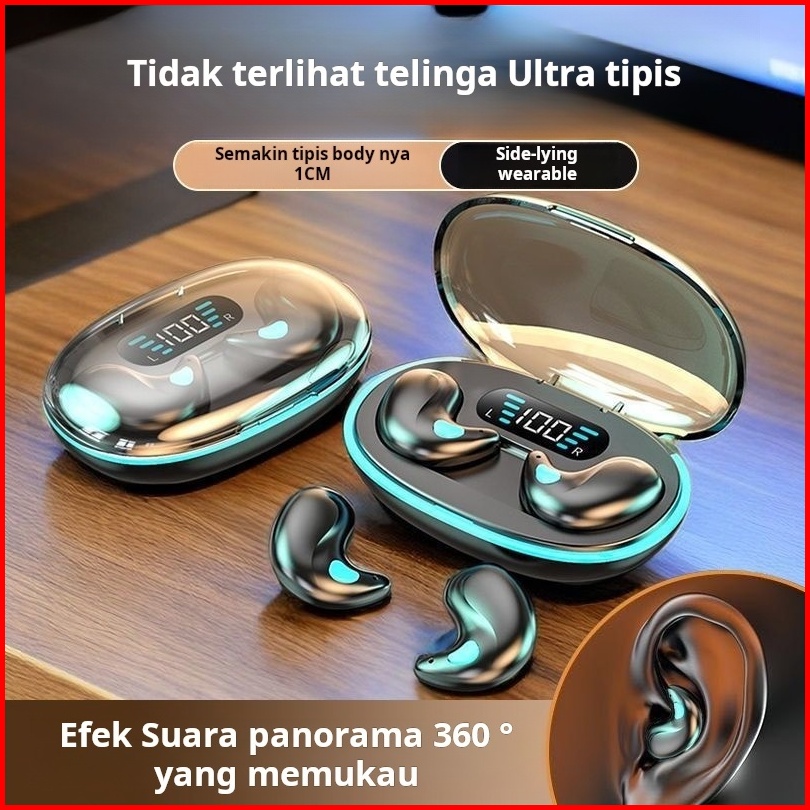 X55 Earbud Tidur Nirkabel Dengan Mikrofon Stereo Hi-fi Built-in Tampilan Led Tombol Kontrol Tombol Headphone Tahan Air H