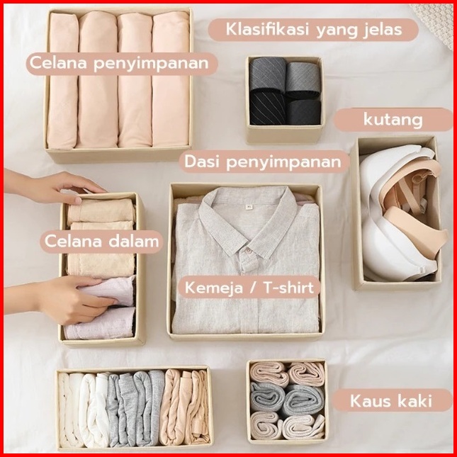 6pcs Kotak Penyimpanan Serbaguna Set Storage Box Organizer Lemari Kain Sekat Lemari Baju Anak