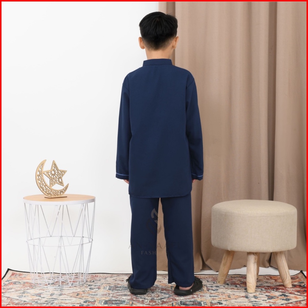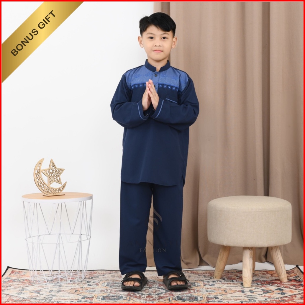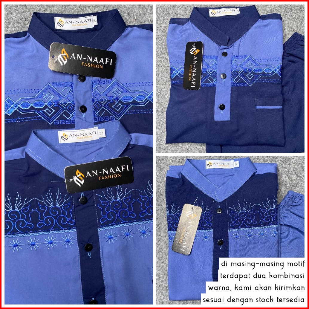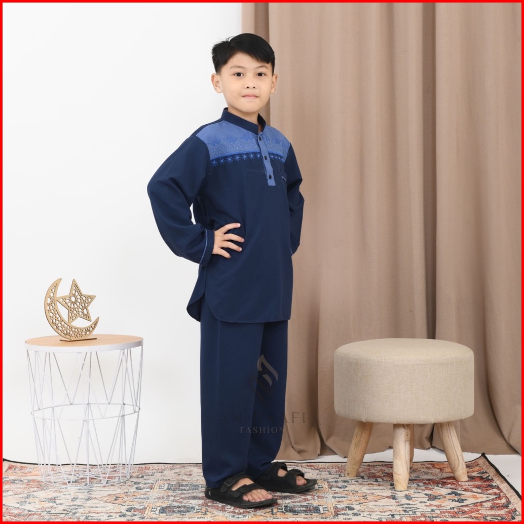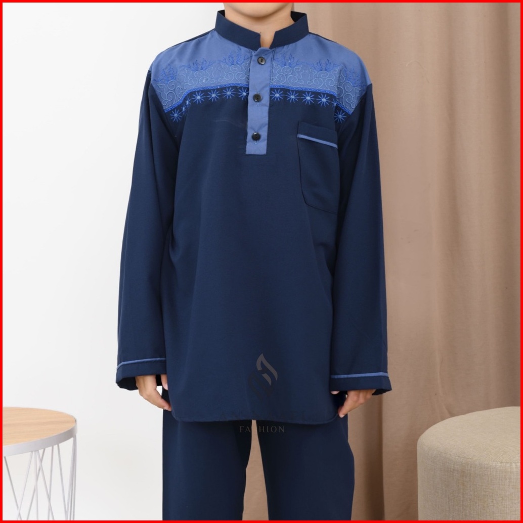 Setelan Koko Anak Laki-laki Lengan Panjang Two Tone Aplikasi Warna Biru Full Bordir Usia 4-12 Tahun Terbaru