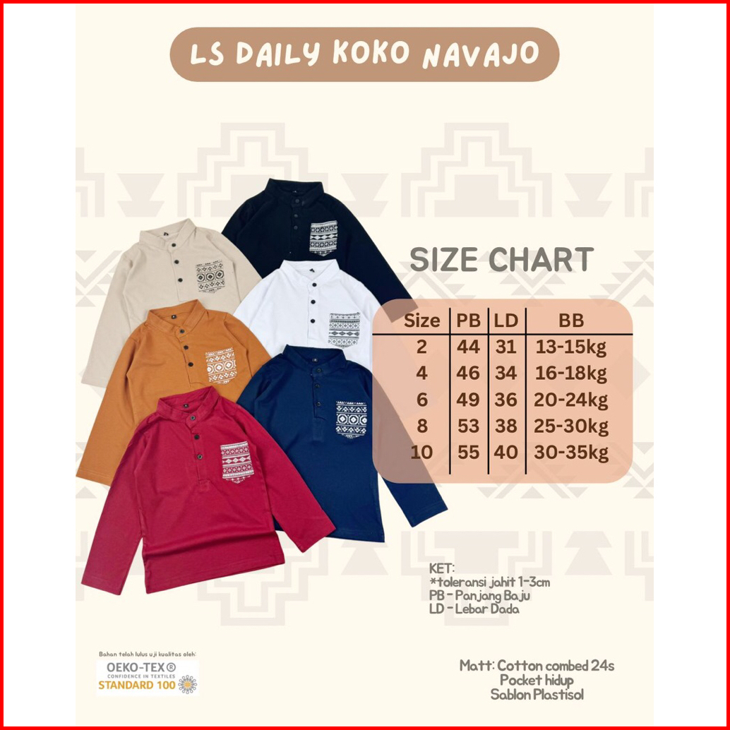 Paket 3pcs Koko Lengan Panjang Anak Usia 2-8 Tahun Bahan Kaos Adem Haluss Long Koko Navajo