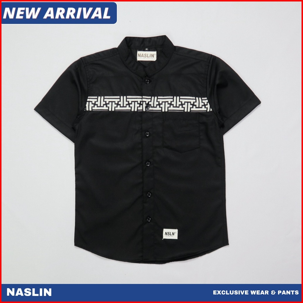 Naslin Baju Koko Anak Laki - Laki Lengan Pendek Usia 4 - 15 Tahun Hitam Motif Falcon Bahan Toyobo