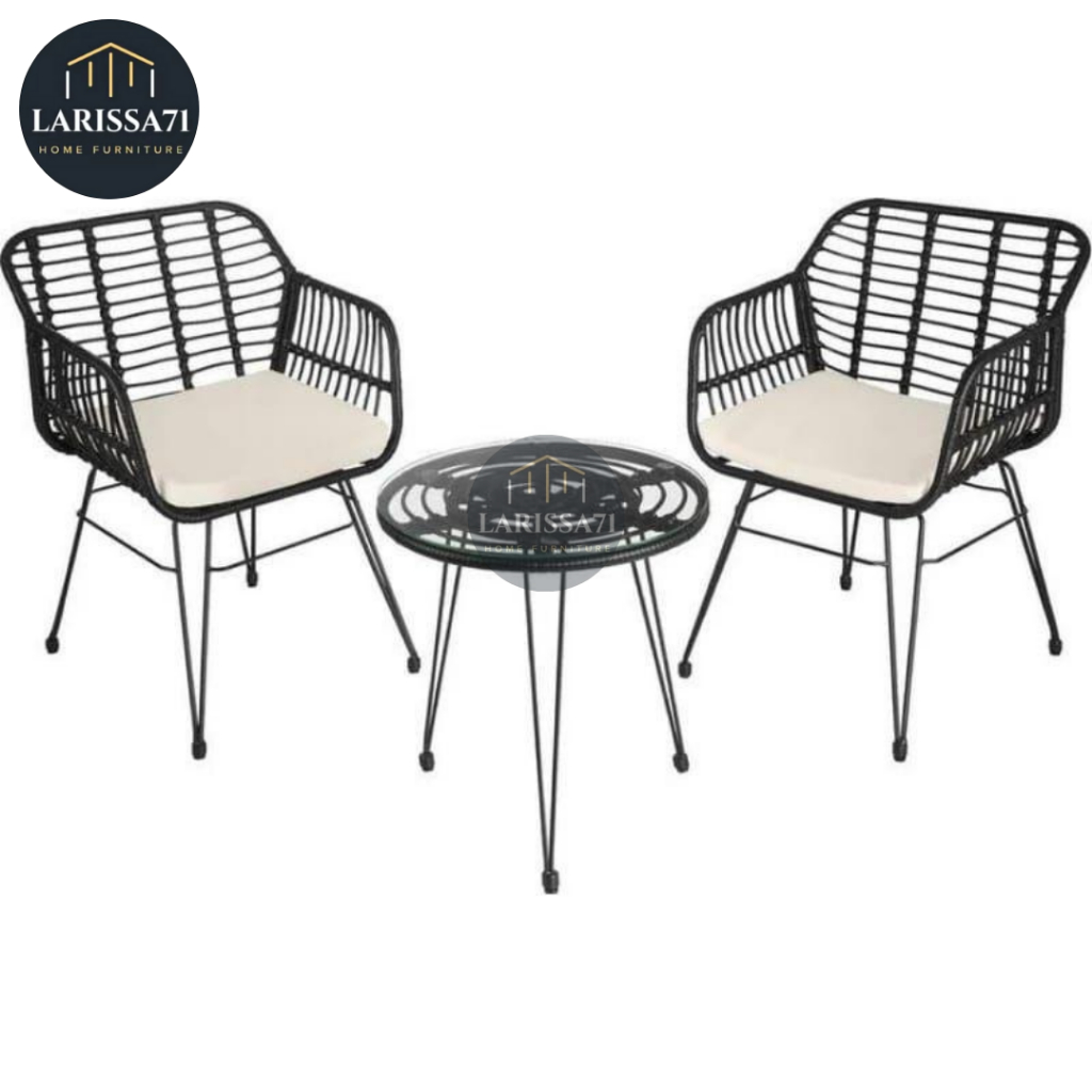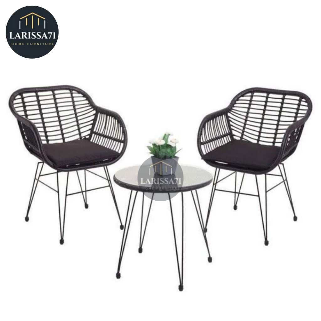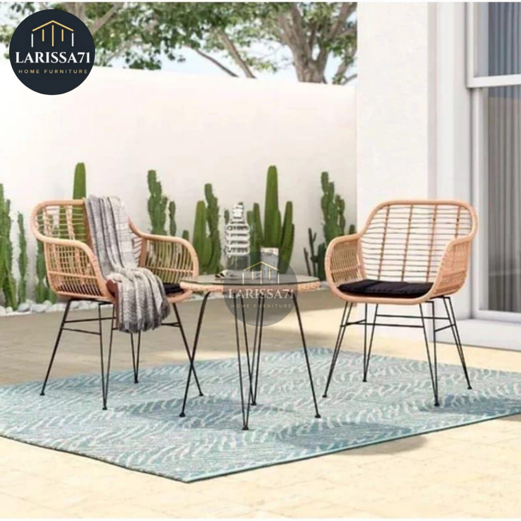 Set Kursi Teras Rotan Minimalis Rangka Besi Aesthetic Cafe + Jok Busa
