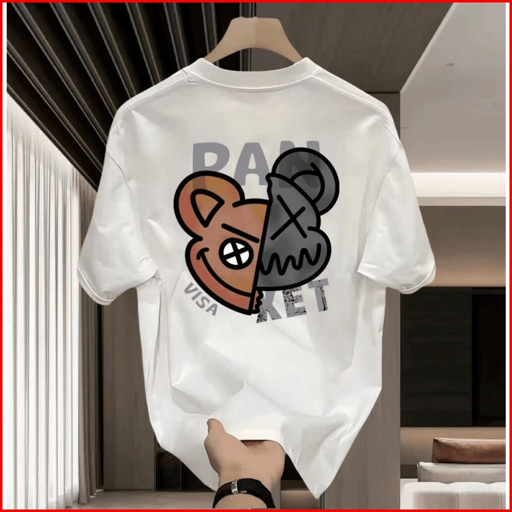 Busana Musim Panas Kaos Oblong Lengan Pendek Cetak Katun Atasan Pria