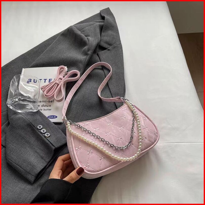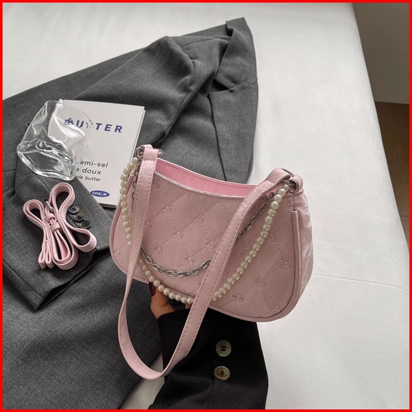 Ready Tas Selempang Wanita Nyaman Stylish Shoulder Bag Rantai Mutiara Kapasitas Praktis