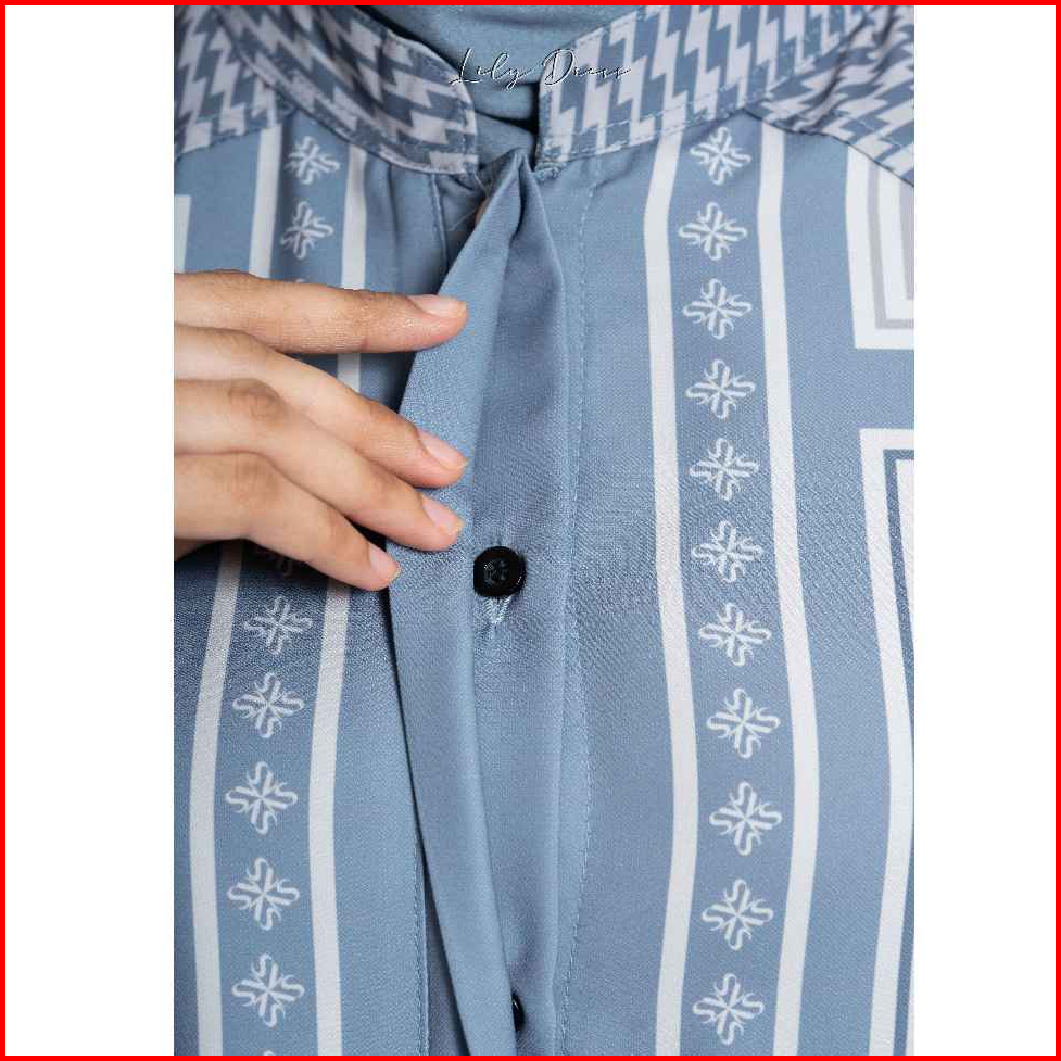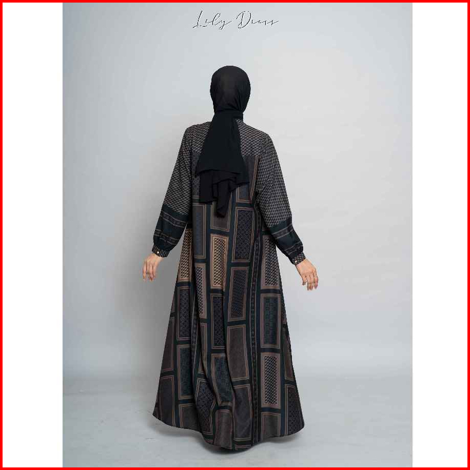 Shalu Nisabila - Lily Dress Monogram Printing Gamis Wanita Busui Friendly Baju Wanita Muslimah