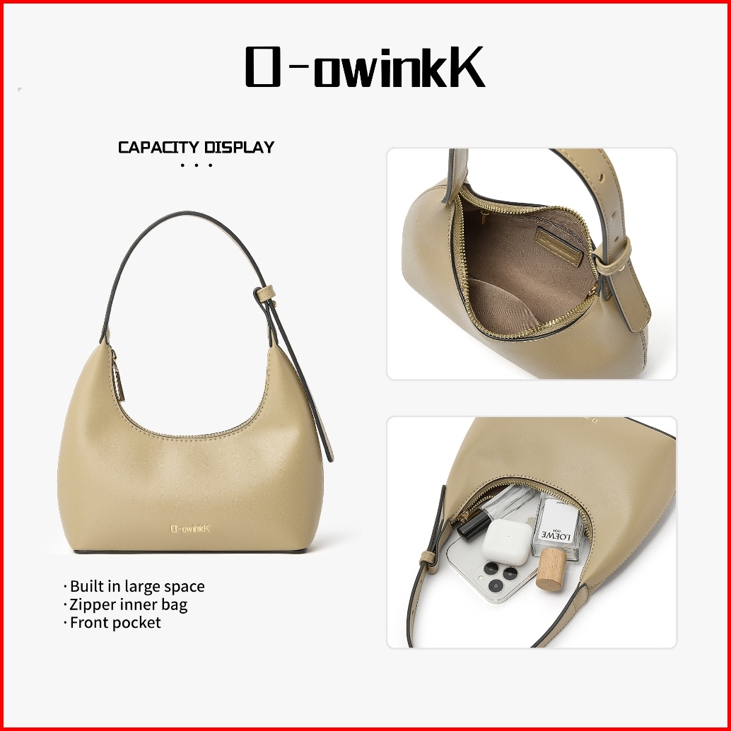 O-owinkk Tas Ketiak Tas Tangan Wanita Kulit Pu Desain Warna Solid Tahan Air Cocok Untuk Aktivitas Keluar Sehari Hari