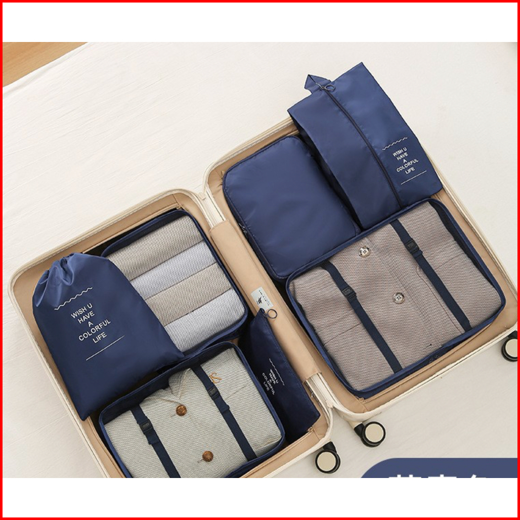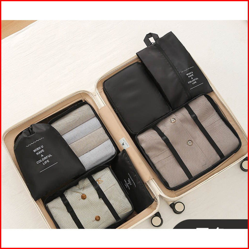 Travel Pouch Organizer 7 In 1 Set Tas Packing Koper Travel Bag Waterproof Penyimpanan Baju Sepatu Kosmetik Toiletries