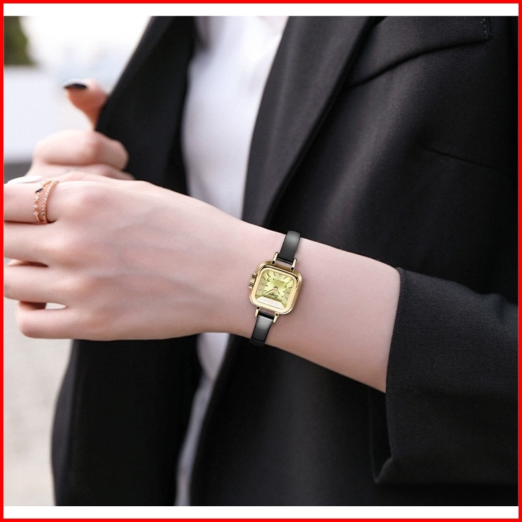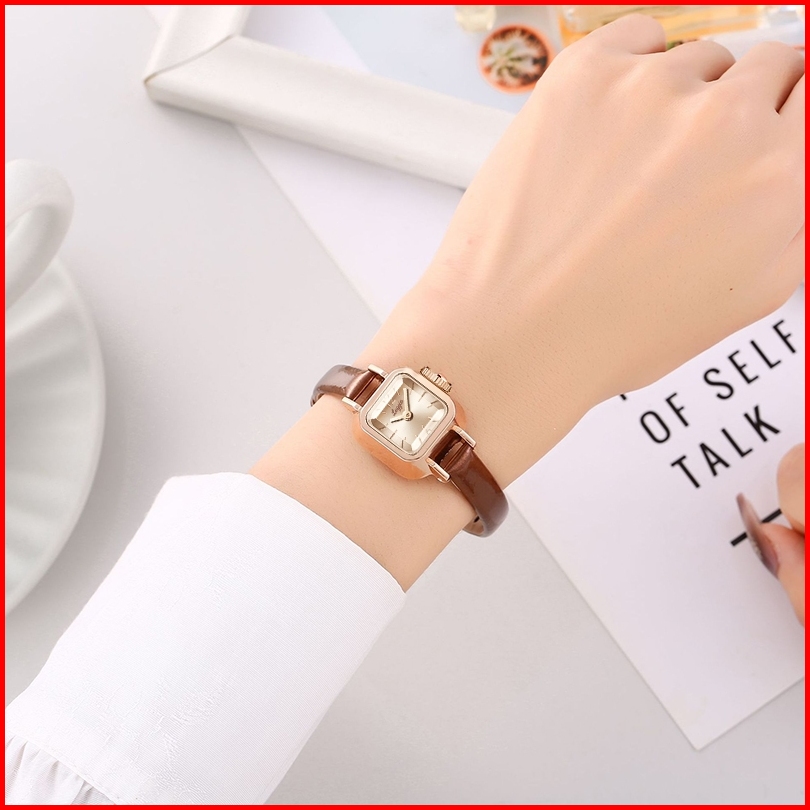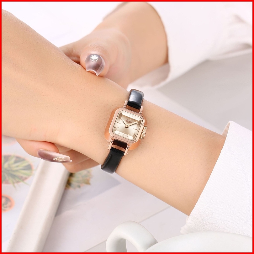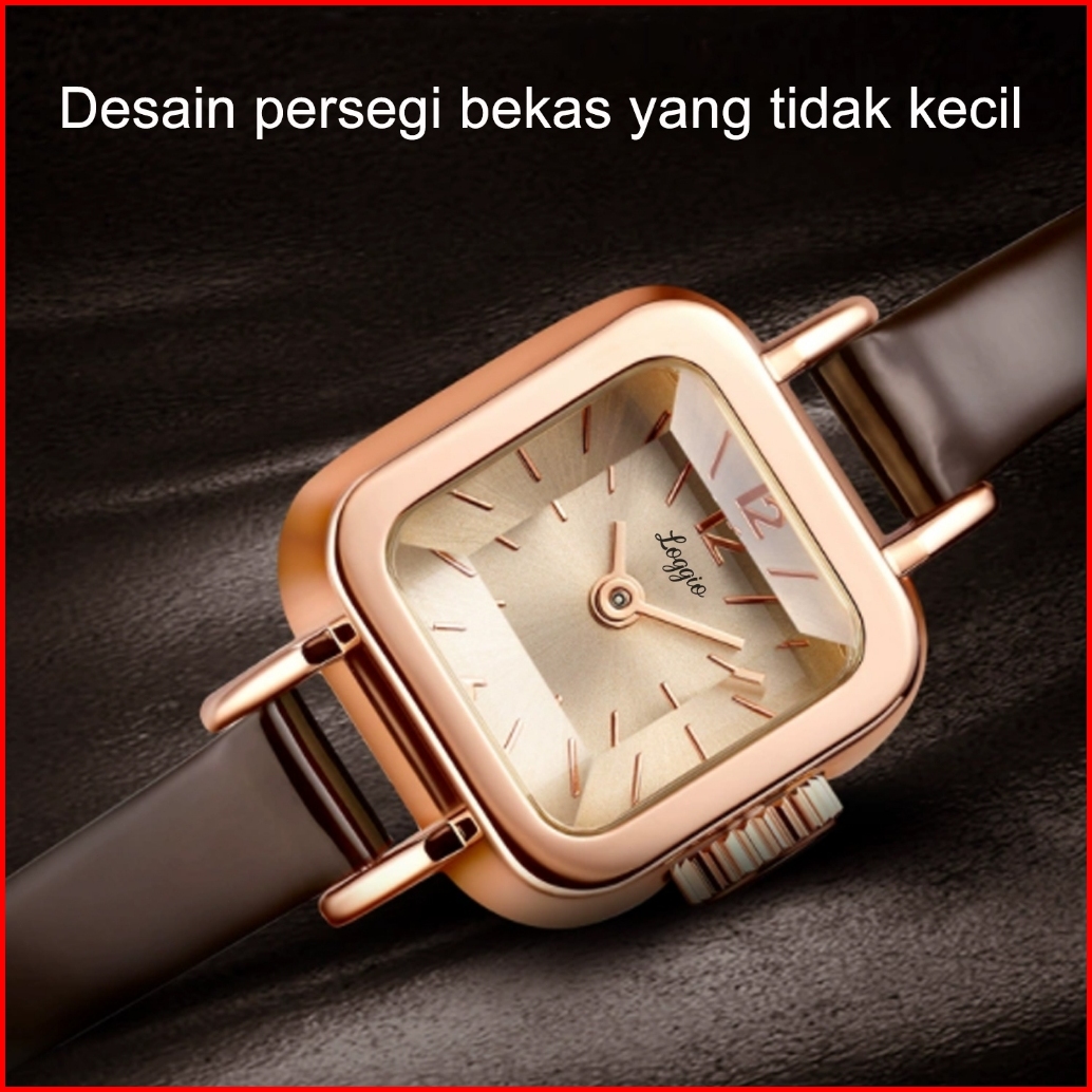 Loggio Jam Tangan Wanita Korea Antik Persegi Anti Air Pu Analog Casual Gaya Retro Wanita Persegi Jam Tangan Cewek