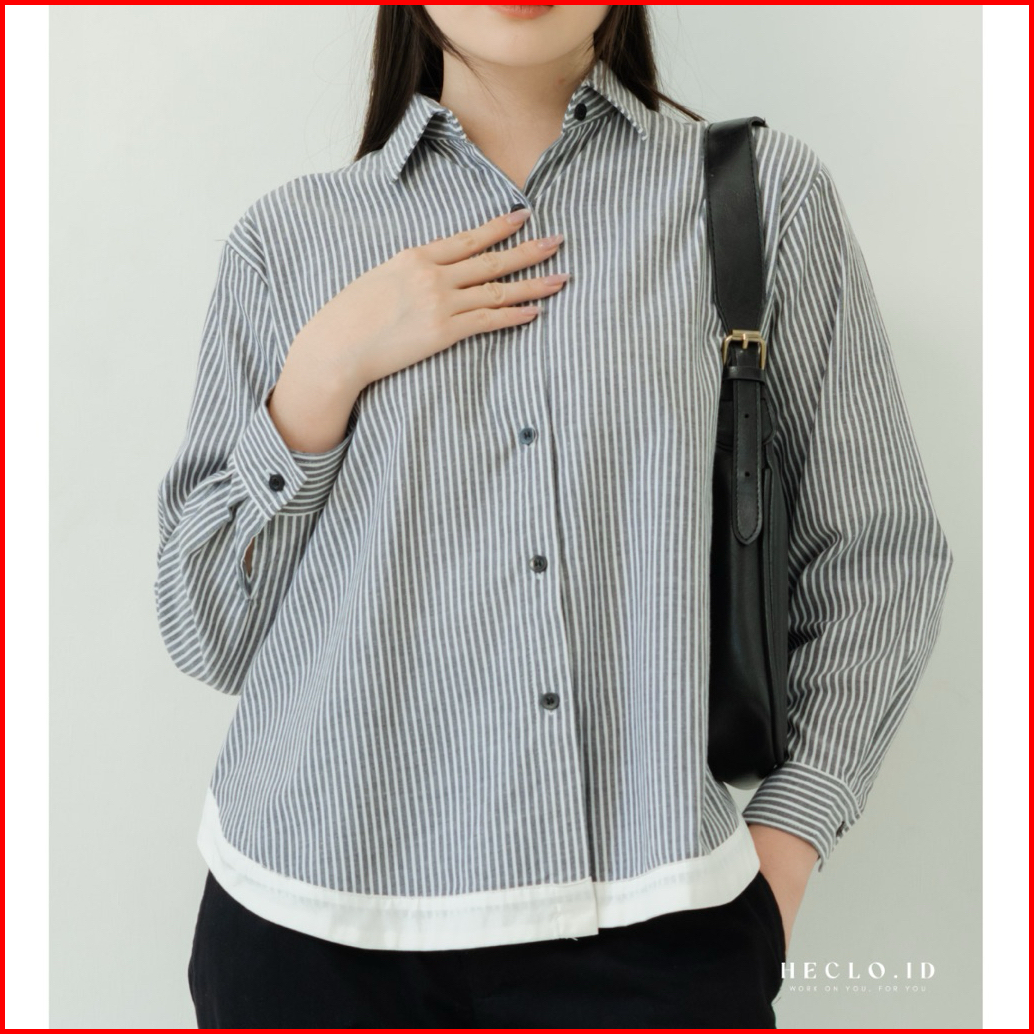 Heclo.id - Maple Stripe Shirt Atasan Wanita Kemeja Wanita