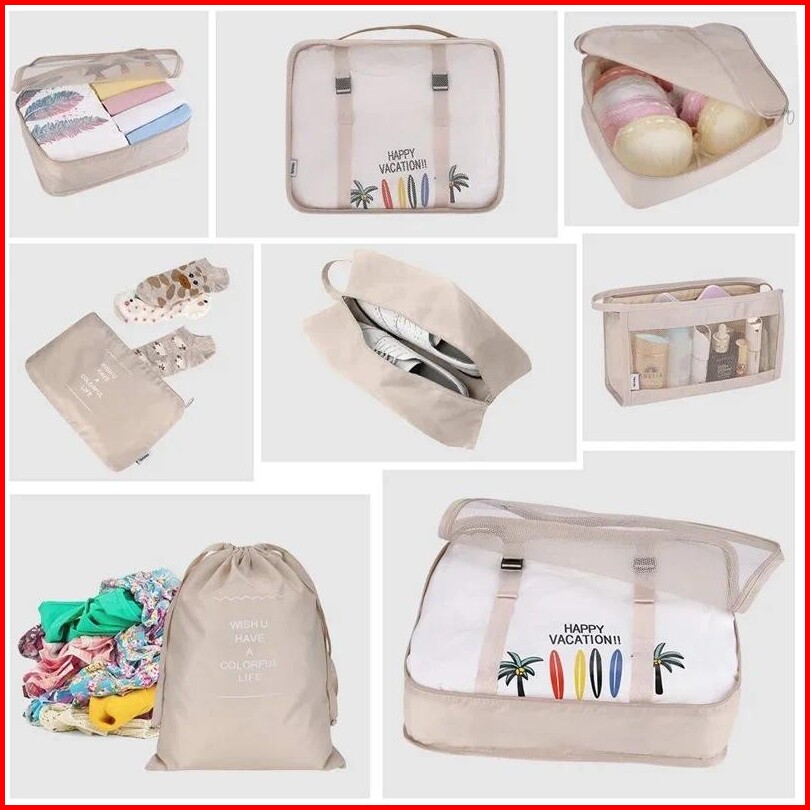 8pcs Tas Travel Bag Tas Penyimpanan Perjalanan Storage Bagtas Travel Organizer Set Kantong Bagasi Portabel Suitcase Orga