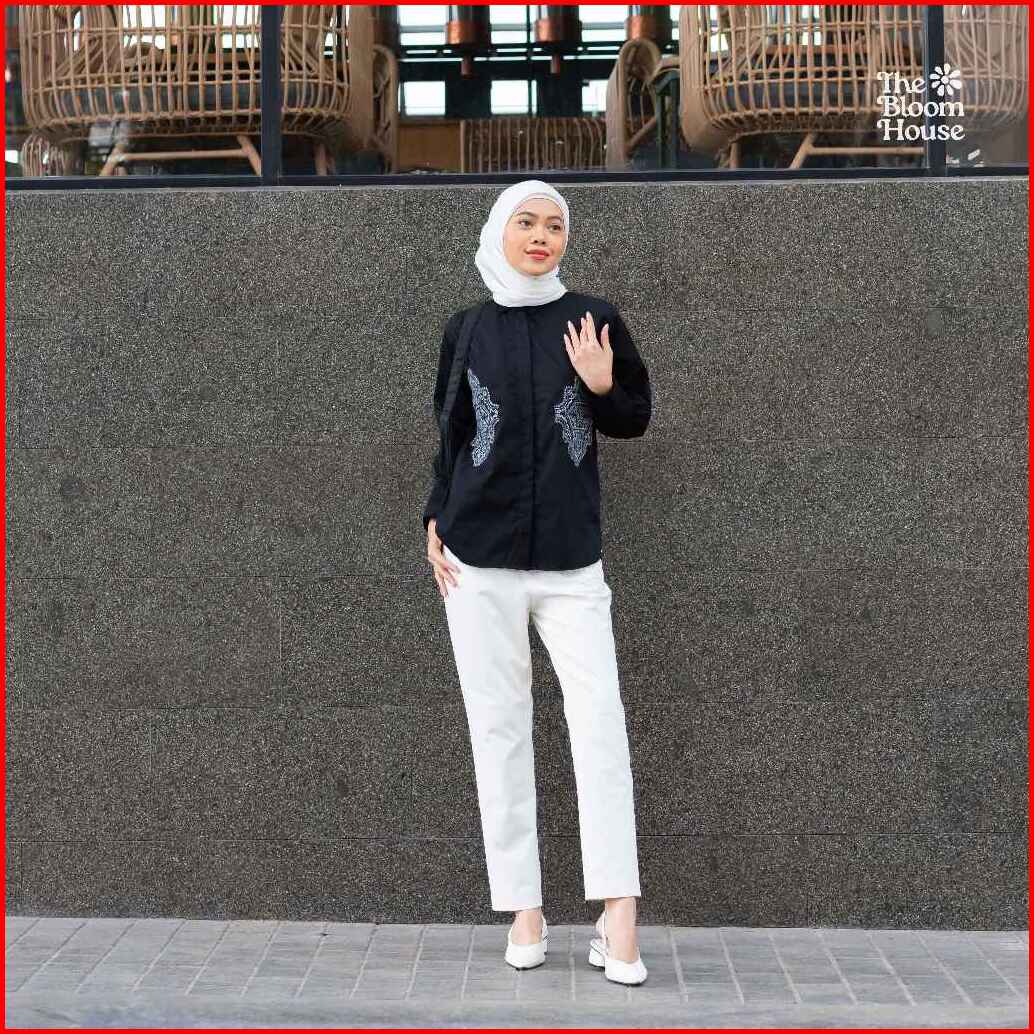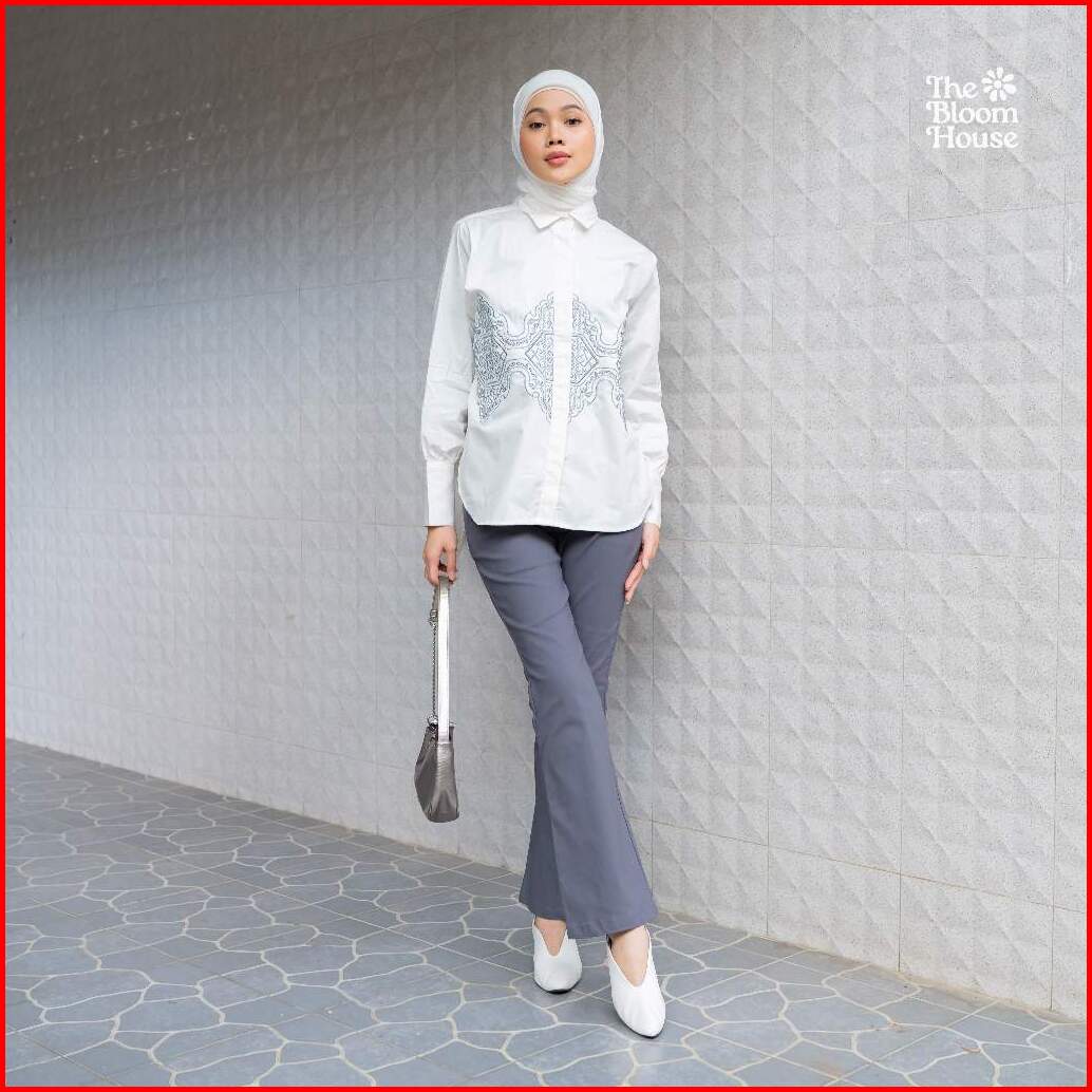 Shaffa Shirt Poplin Bordir Wanita Kemeja Atasan Casual Formal The Bloom House B711