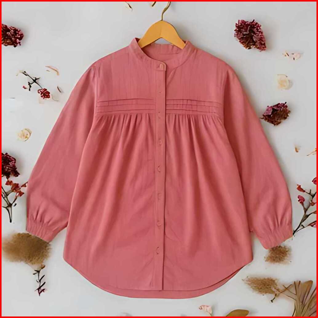 Blouse Korea Ruffle Atasan Wanita Ruffle Depan Crinkle Lengan Panjang Ukuran M L Xl Xxl Xxxl