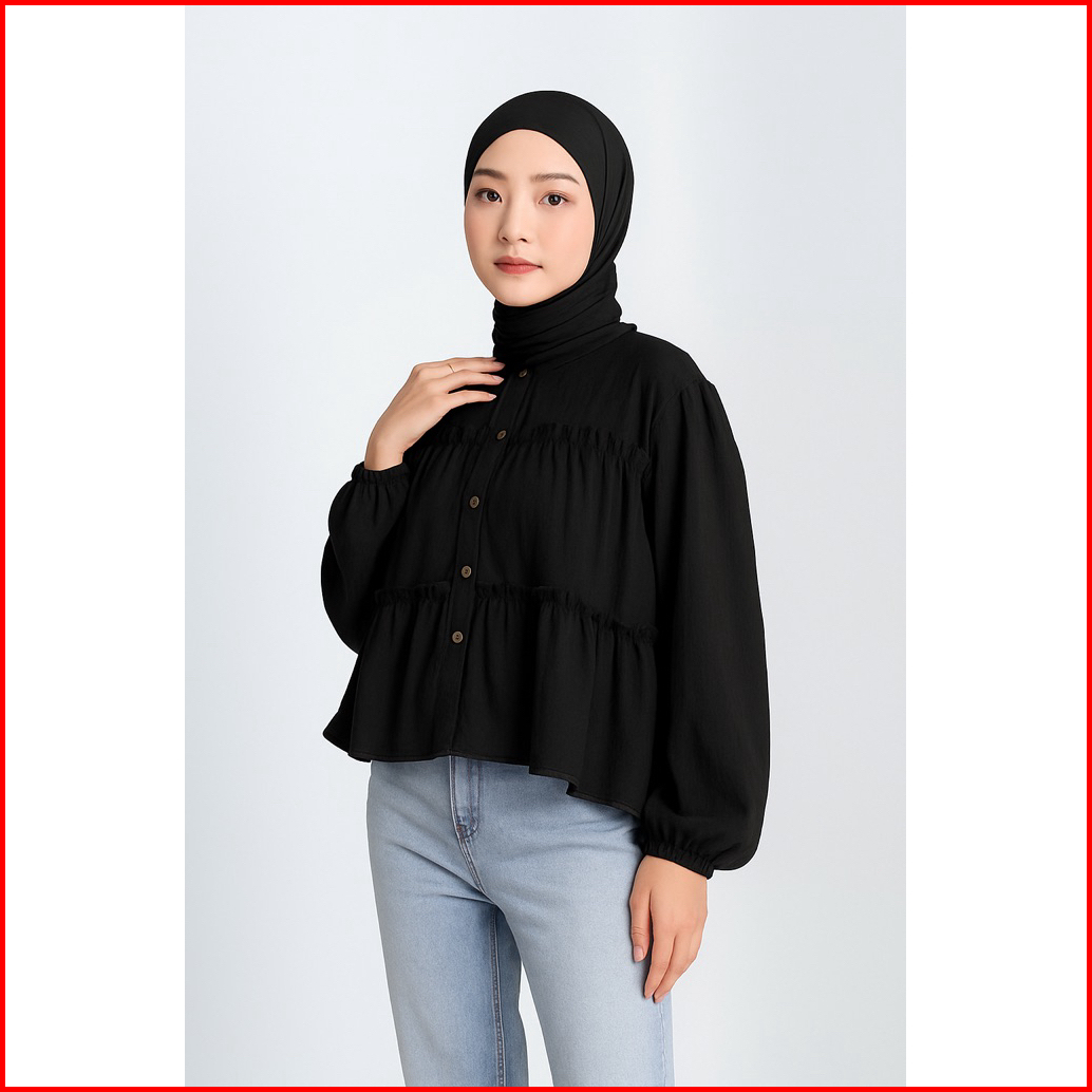 Neora Blouse Kemeja Crop Top Wanita Ruffle Lengan Balon Korean Style Atasan Wanita Kekinian By Nazira