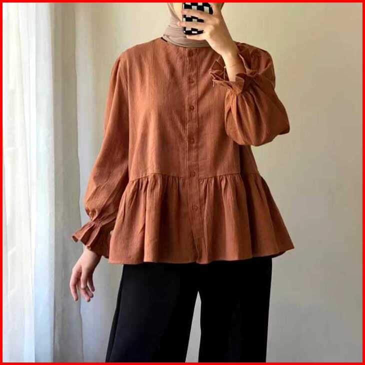 Lolly Blouse Wanita Korean Style Atasan Wanita Kemeja Linen Basic Lengan Panjang