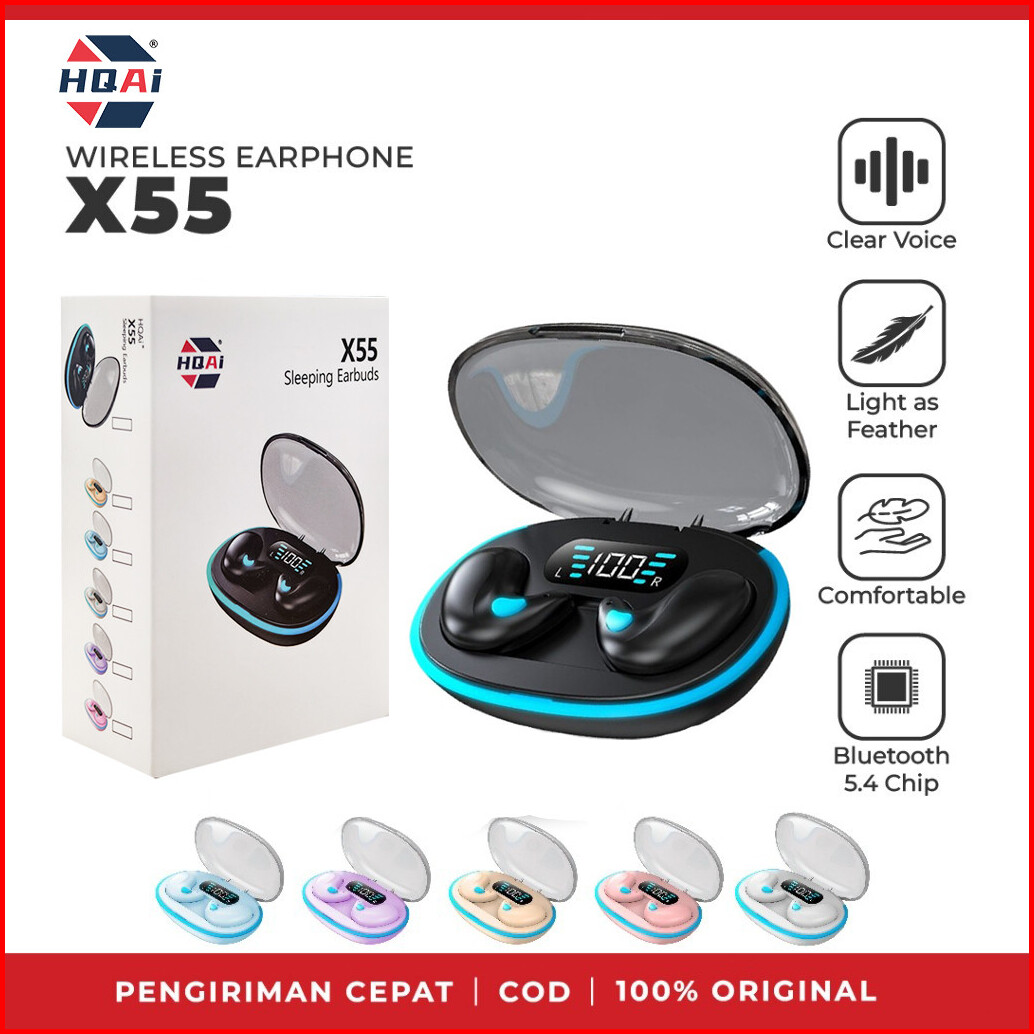 Hqai X55 Headphone Tidur Tak Terlihat Kualitas Suara Tinggi Umur Ultra Panjang Bluetooth 5.4 Headset Tahan Air Dengan Pa