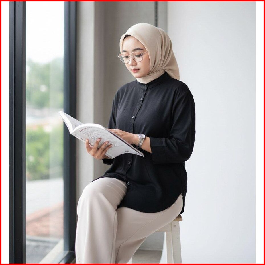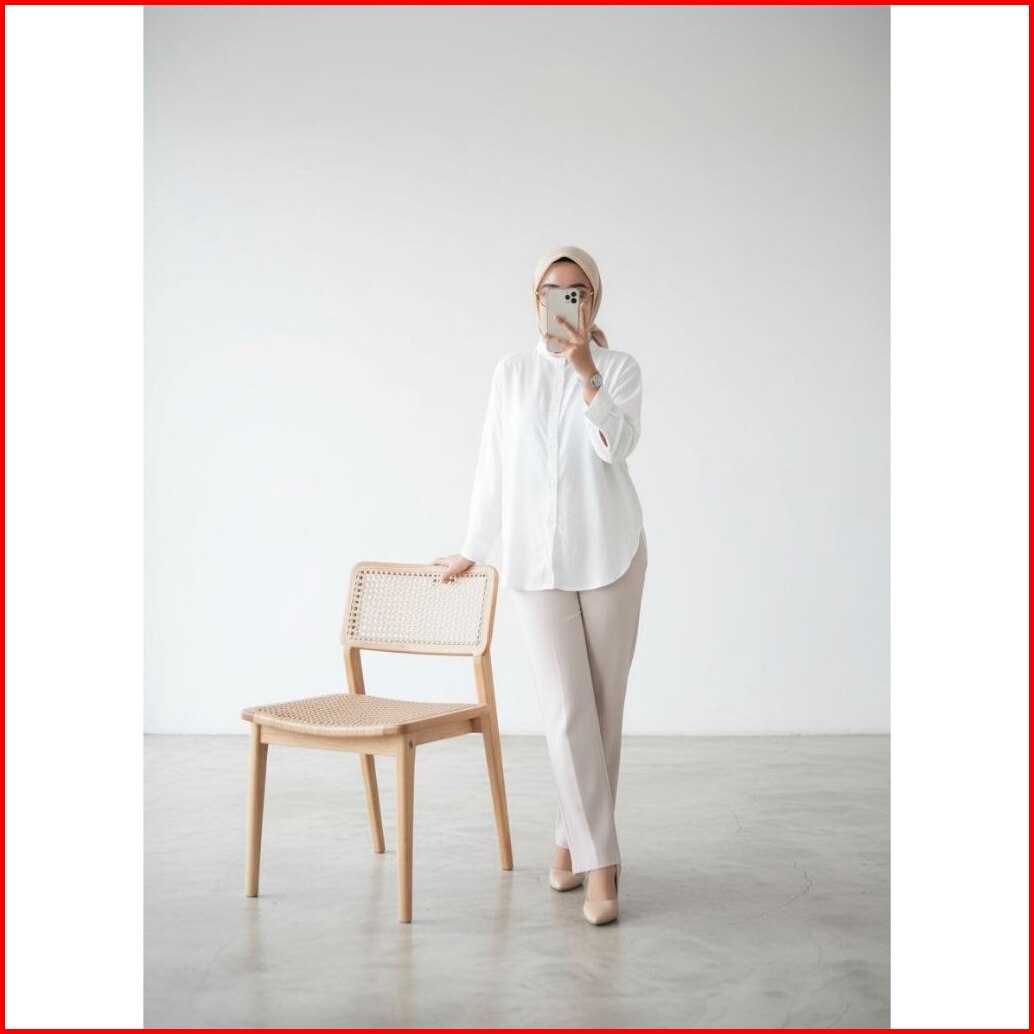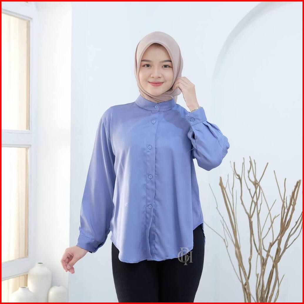 Jessy Top Shirt Kemeja Blouse Basic Rayon Twill Polos Wanita Oversize Lengan Panjang Kerah Sanghai