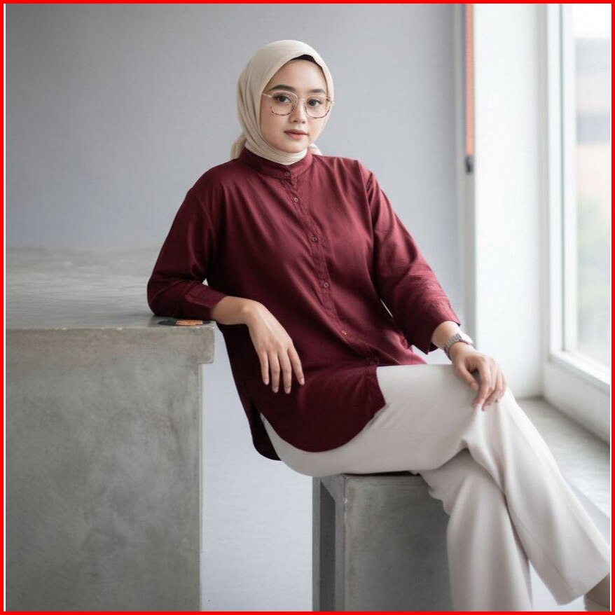 Kemeja Rayon Twill Premium Blouse Wanita Lengan 3 4