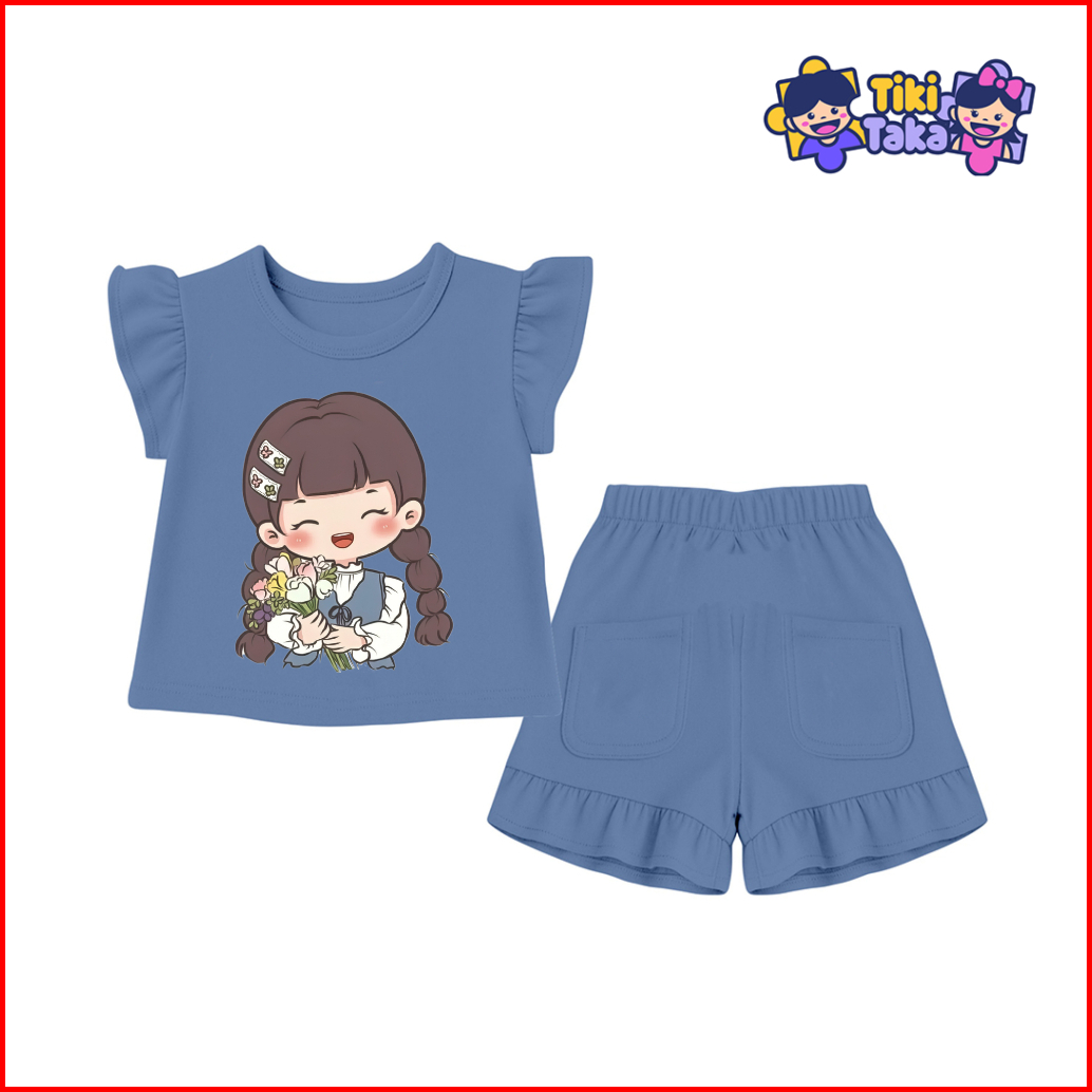 Setelan Baju Main Lucu Anak Perempuan Usia 1-7 Tahun Gambar Cartoon