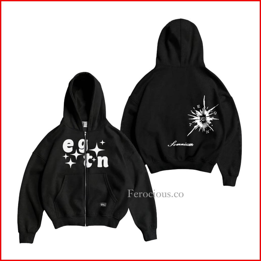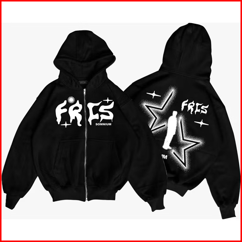 Jaket Sweater Hoodie Boxy Zipper Star Warna Hitam Pria Wanita Memakai Resleting