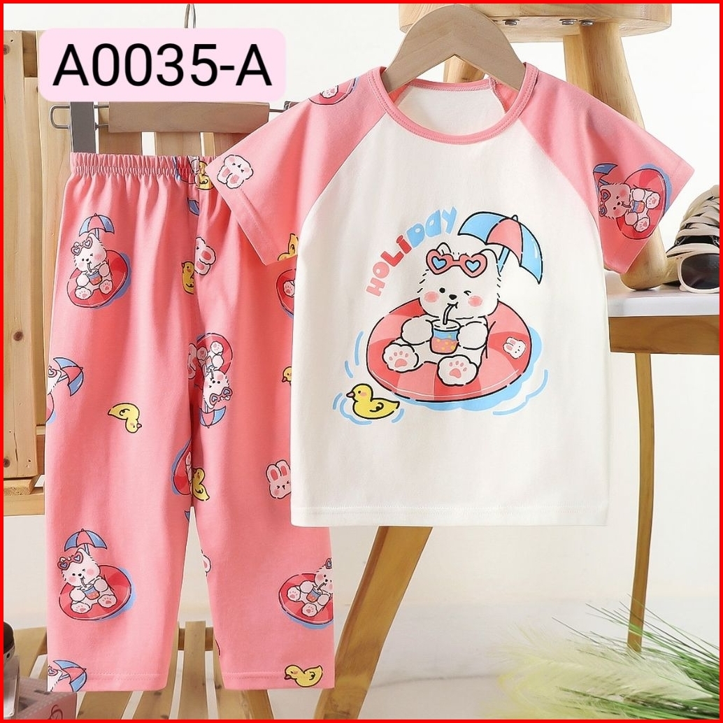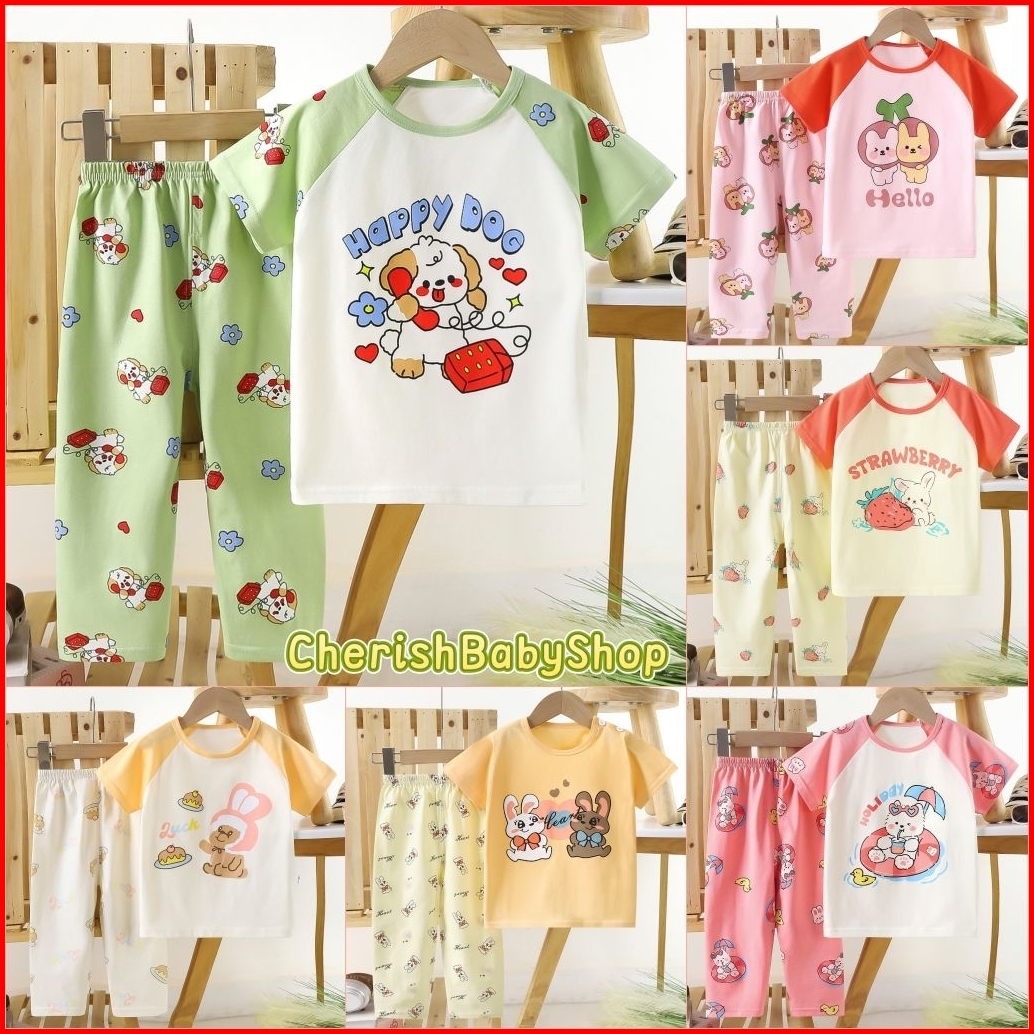 Setelan Anak Perempuan 0-6 Tahun Atasan Lengan Pendek Dan Celana Panjang Piyama Baju Bayi Laki Bahan Katun Lembut Premiu