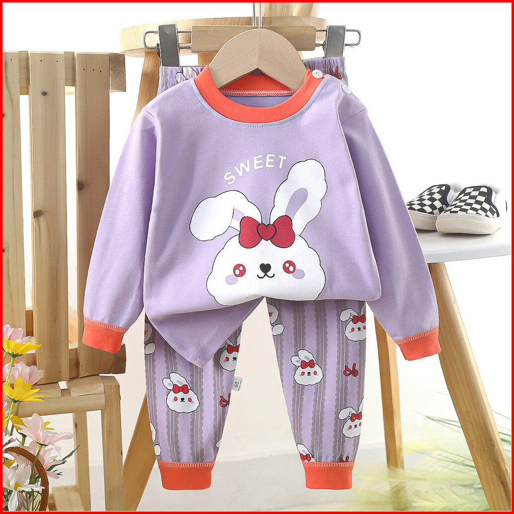 Baju Tidur Anak Perempuan 0-6 Tahun Lengan Panjang Bahan Katun Premium Motif Karakter Lucu