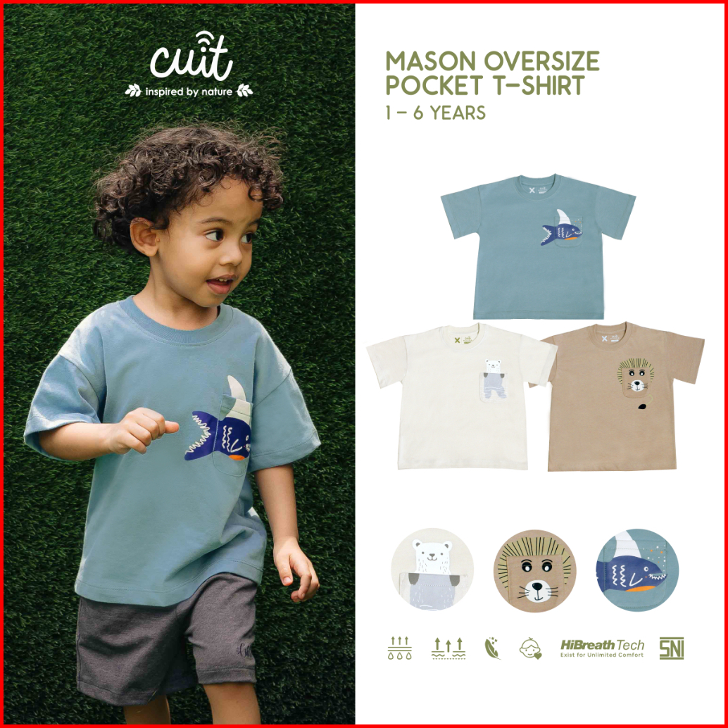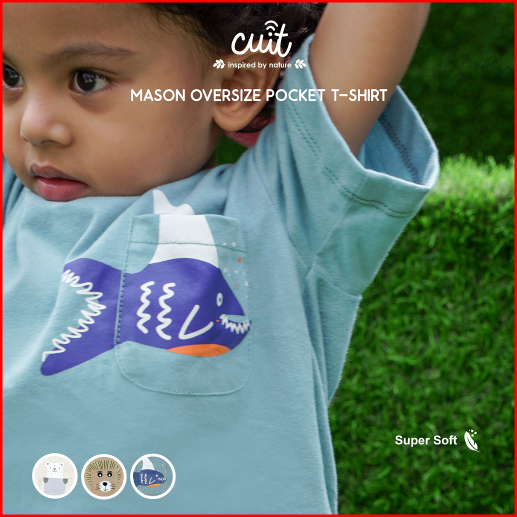 Cuit Mason Kaos Tangan Pendek Sensory Oversize Pocket T Shirt Tee 1 - 6 Tahun Baju Bayi Katun Cotton Suede Anak Laki-lak