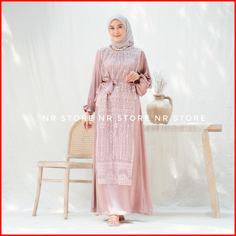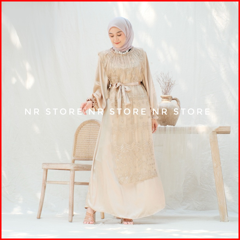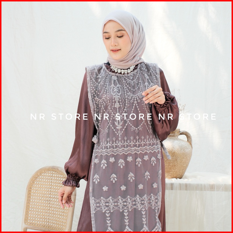 Luna Dress Brokat Inner Drees Set Outer Brokat Lepas Pasang Terbaru Bahan Cradenza Silk Mix Brokat Tulle Dress Kondangan