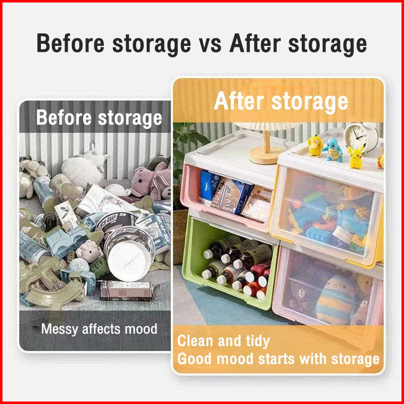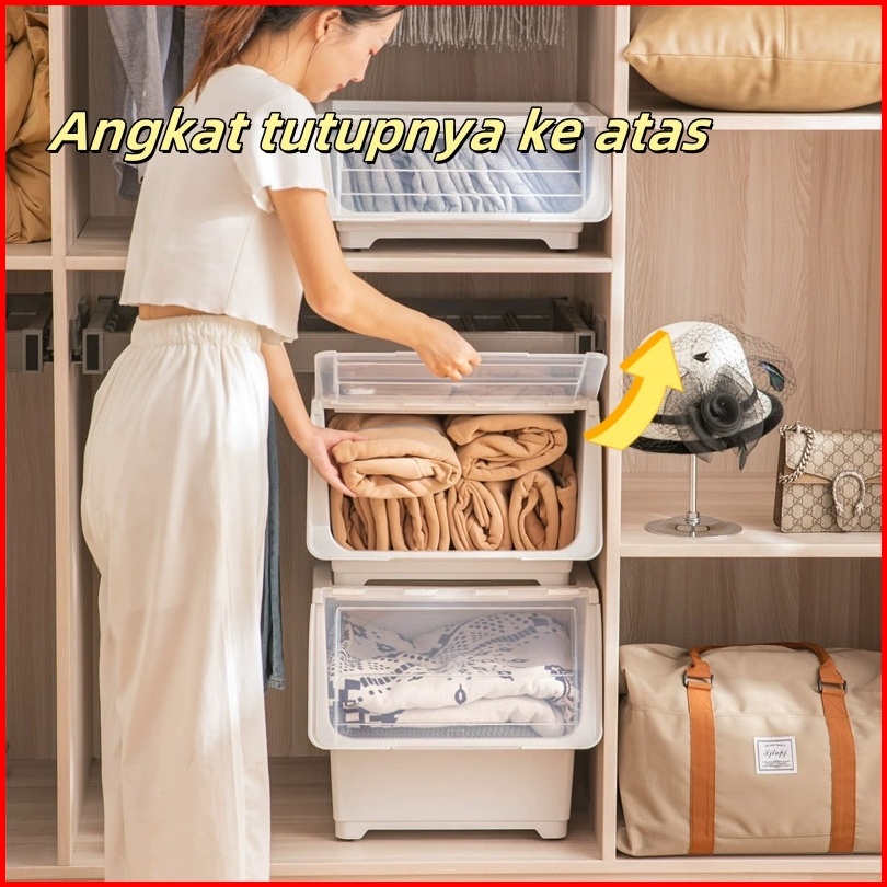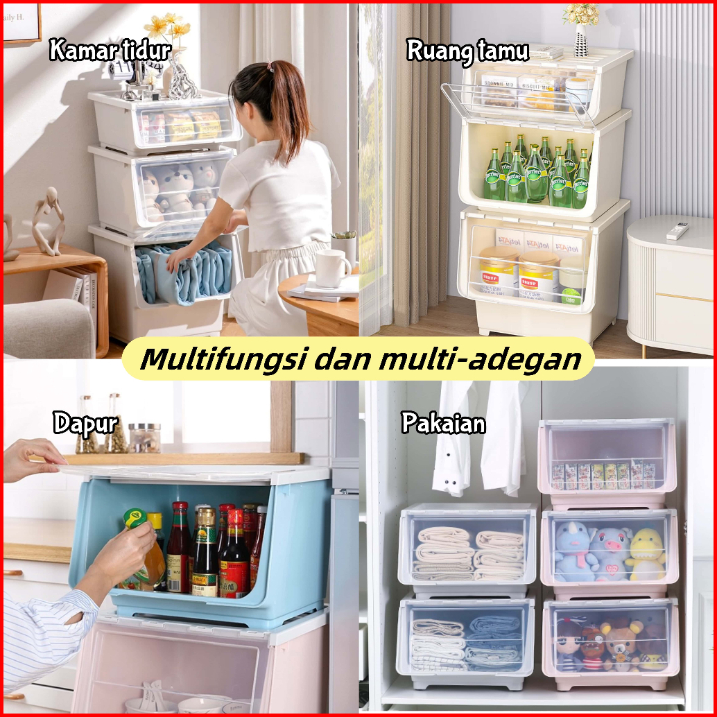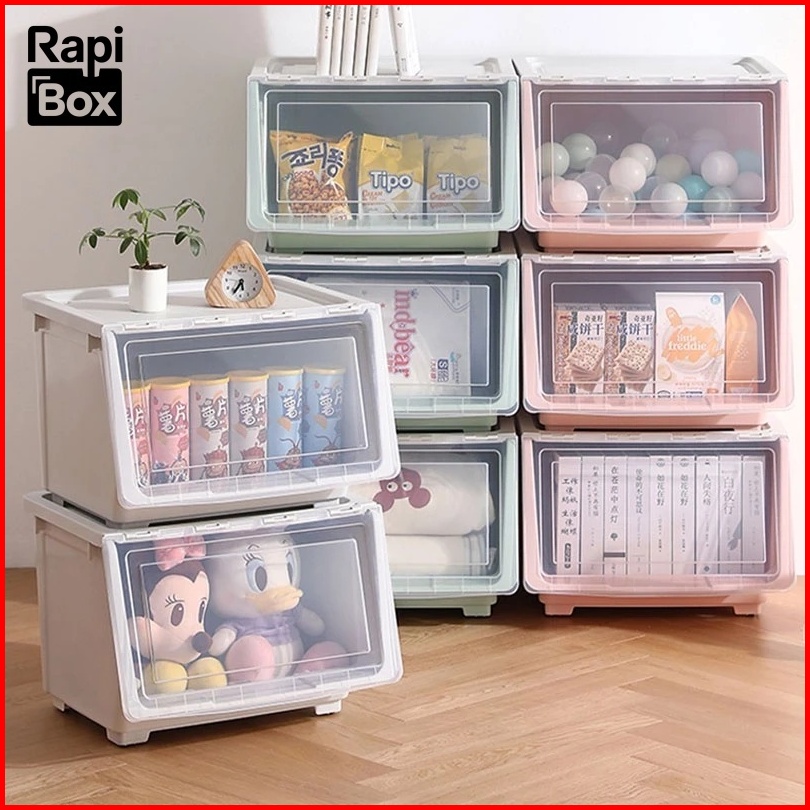 Kotak Penyimpanan Plastik Transparan Besar Double Open Buka Depan Untuk Mainan Anak Buku Pakaian - Multifungsi Anti Lemb