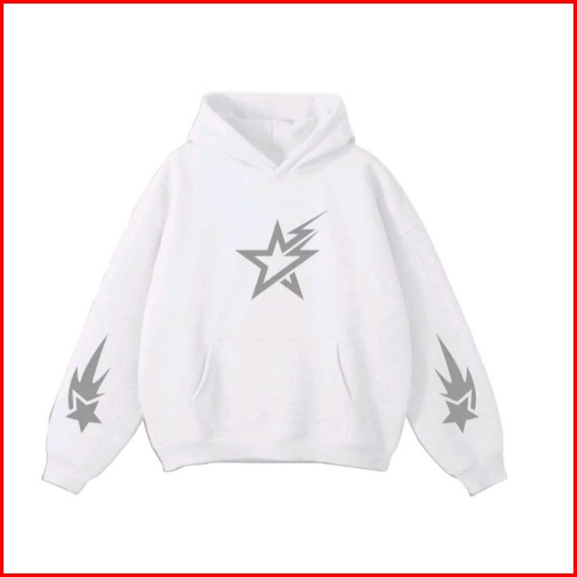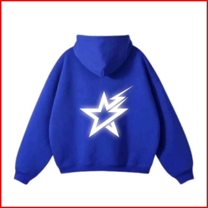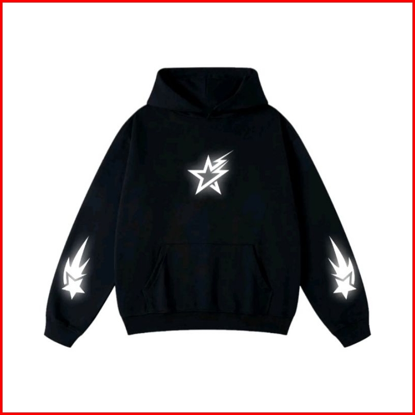 Sweater Hoodie Boxy Sablon Reflektif Menyala Logo Bintang Oversize