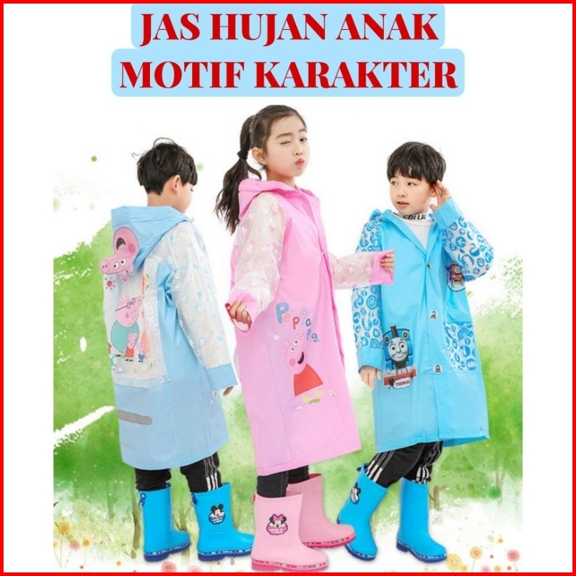 Jas Hujan Anak Perempuan Laki Laki Motif Karakter Lucu Jas Hujan Anak Raincoat Mantel Hujan Anak Terusan