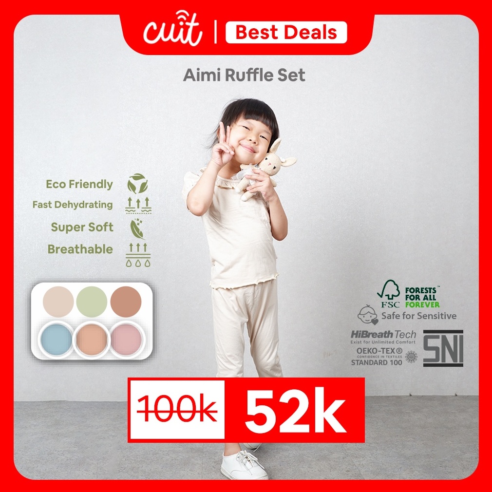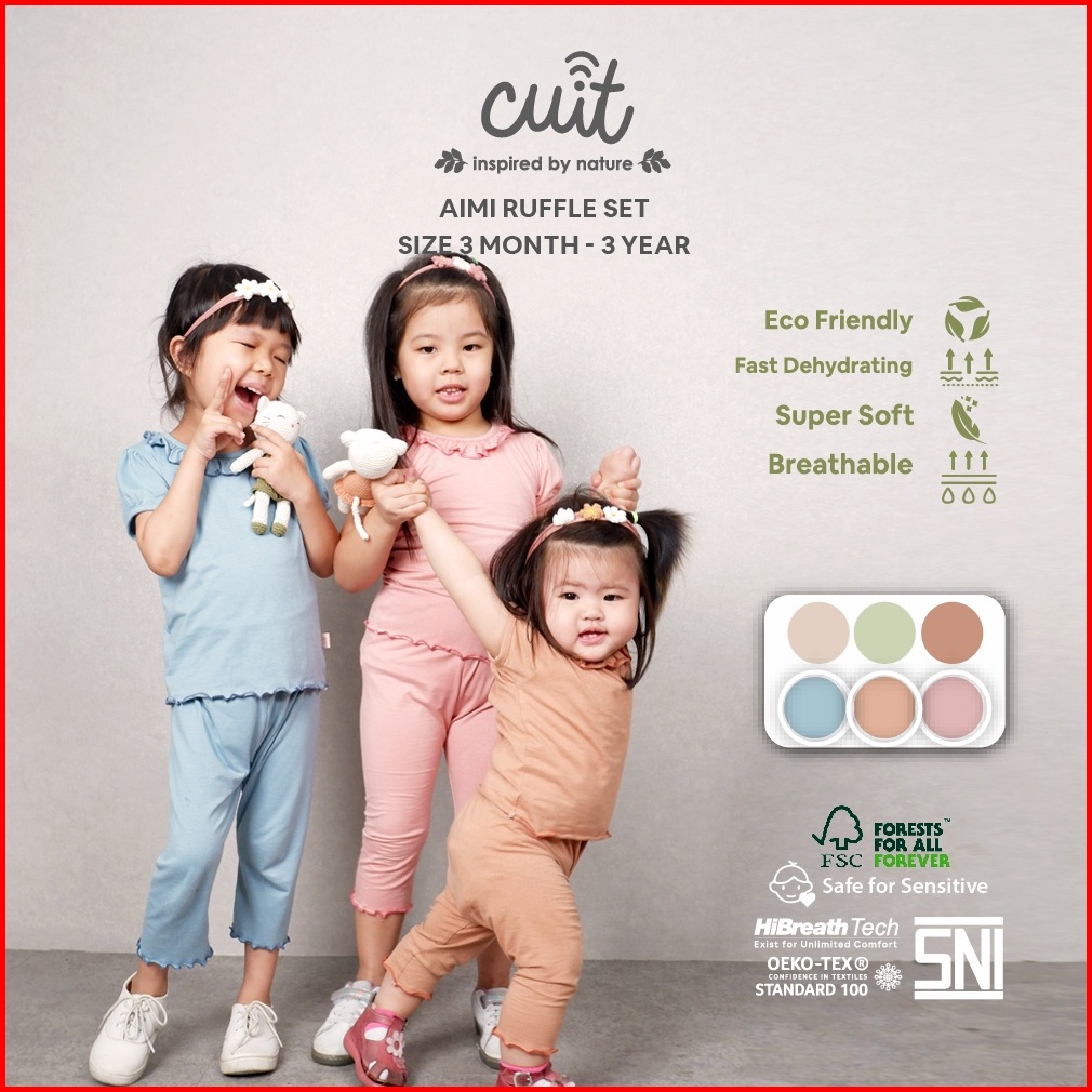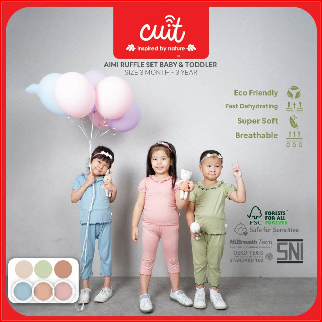 Cuit Baby 3 Bulan - 3 Tahun Aimi Setelan Pendek Panjang Ruffle Anak Perempuan