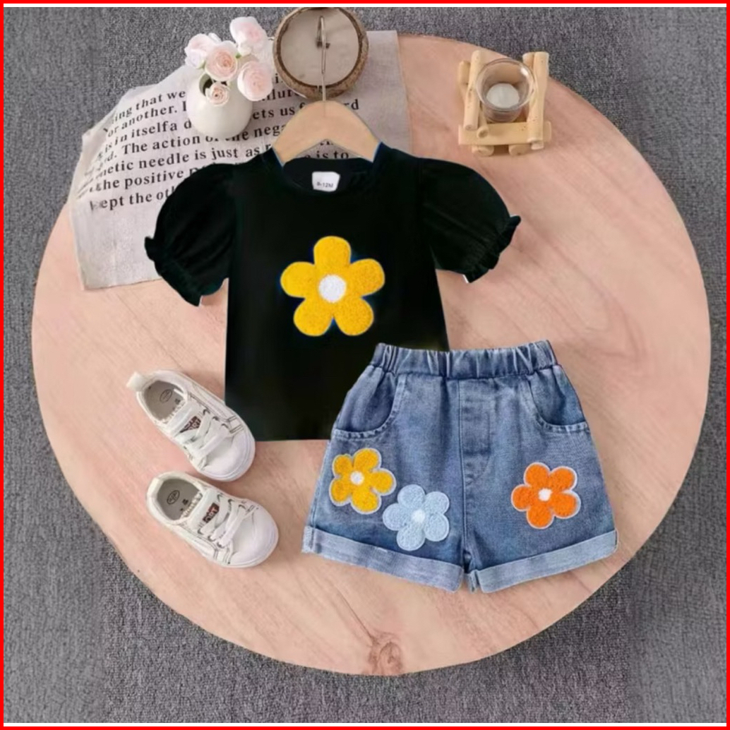 Setelan Anak Baju Anak Perempuan Dan Celana Pendek Anak 1-5 Tahun Motif Flower Ardan Baju Anak
