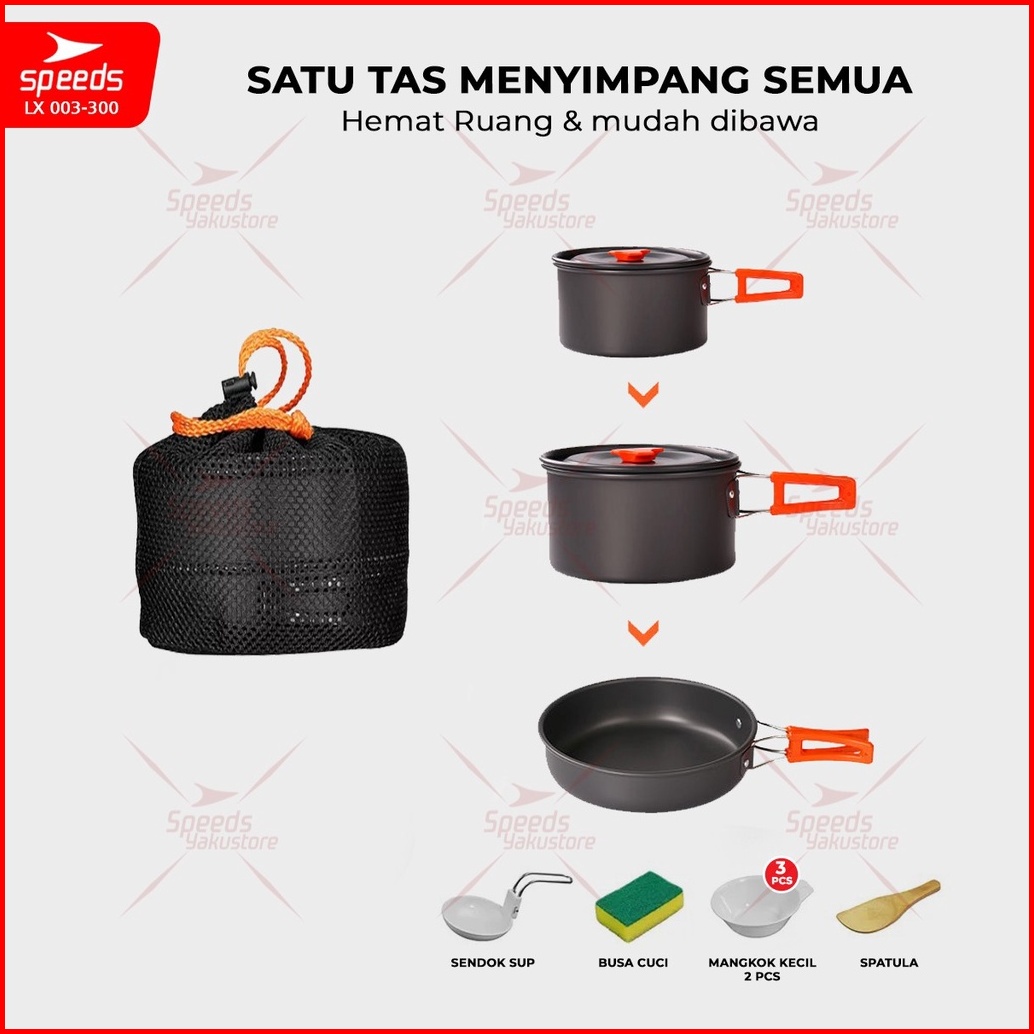 Speeds Alat Masak Camping Set Mini Cooking Cookware Rekreasi Pesta Portable 2-6 Orang Outdoor Minimalis 003-300