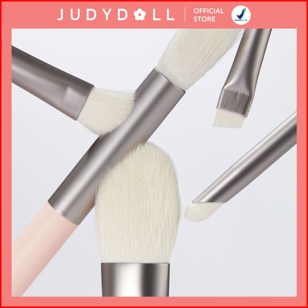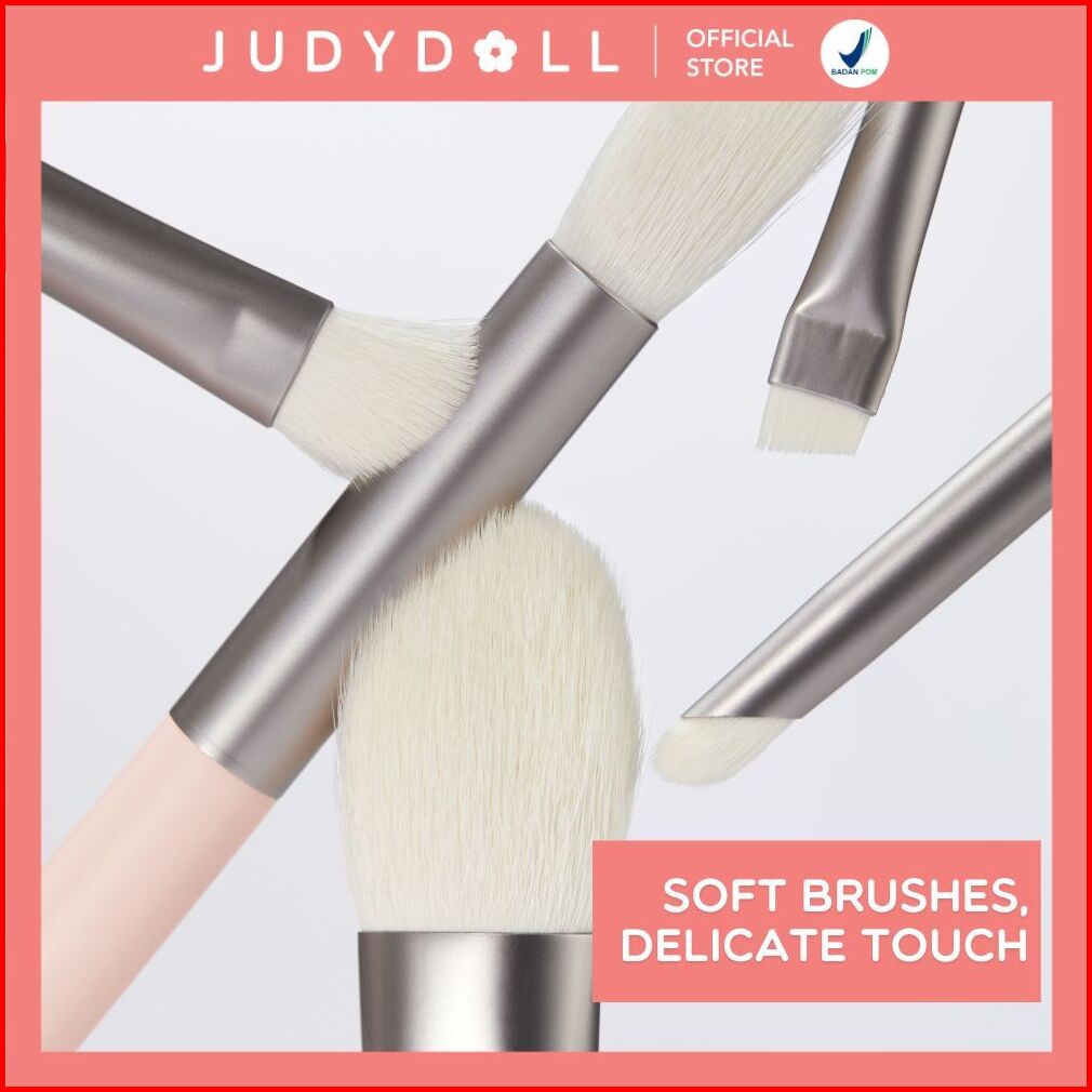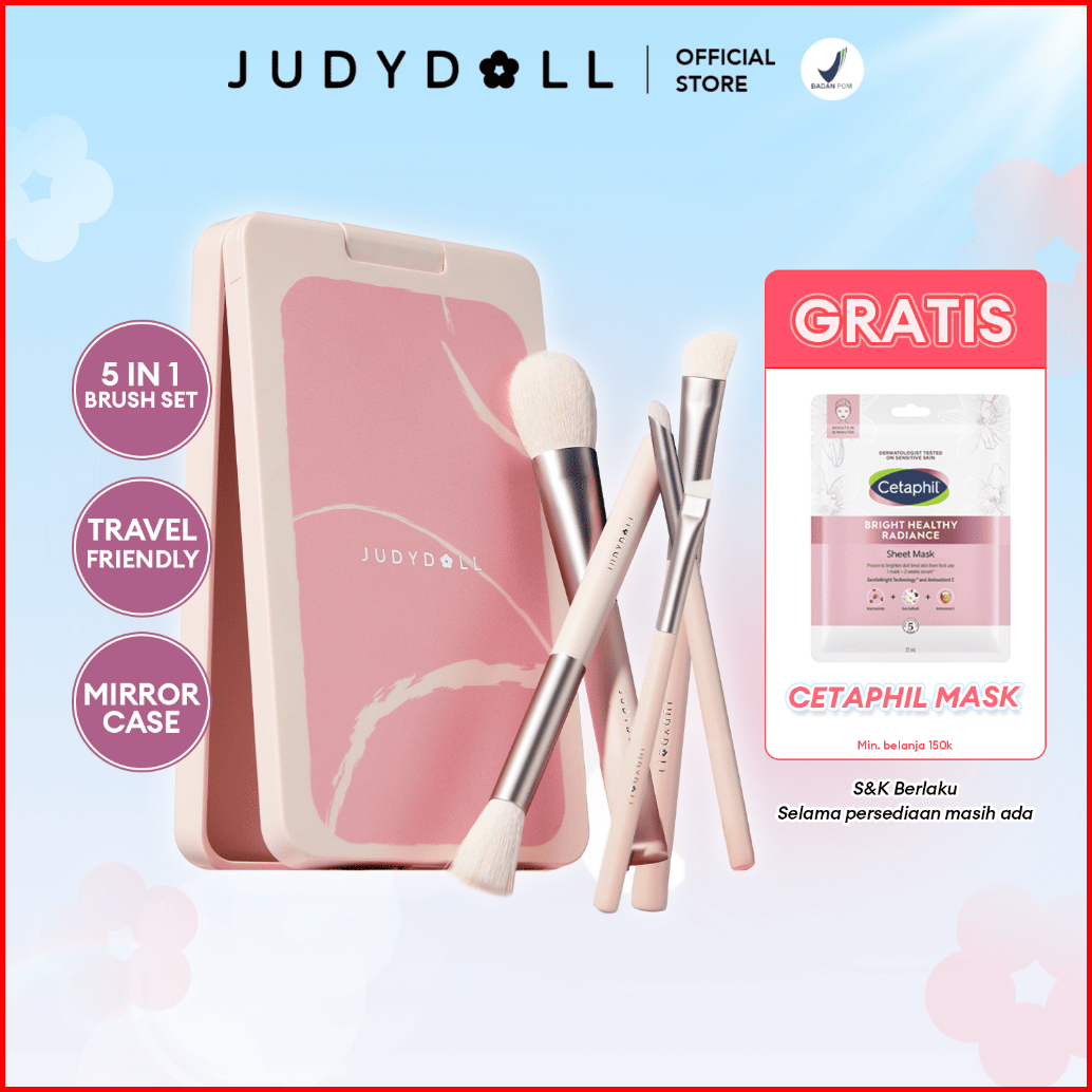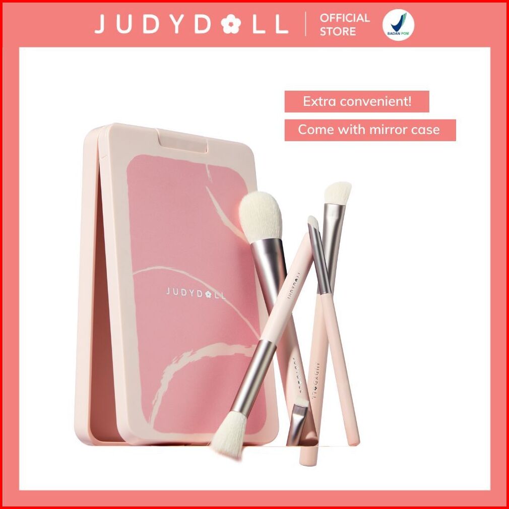 Judydoll Travel Brush Set - 5pcs Brush Makeup Set Lengkap Dengan Kaca Multifungi Compact Travel Friendly