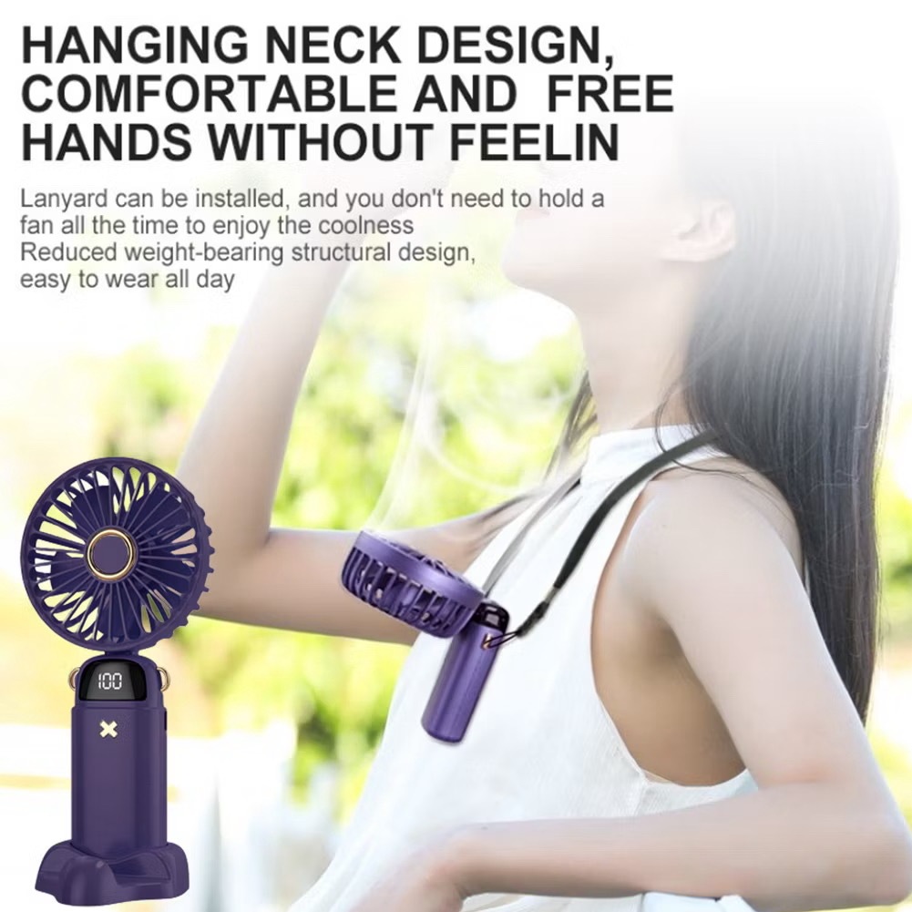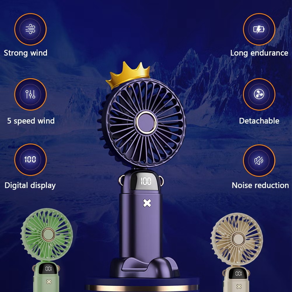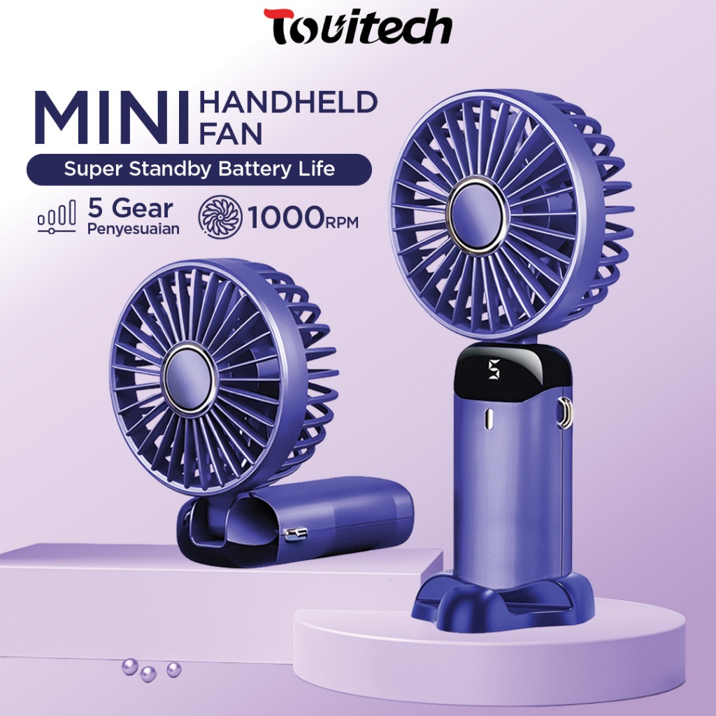 Kipas Portable 5 Level Kecepatan LED Battery Display Mini Fan Wireless Angin Kencang KM001