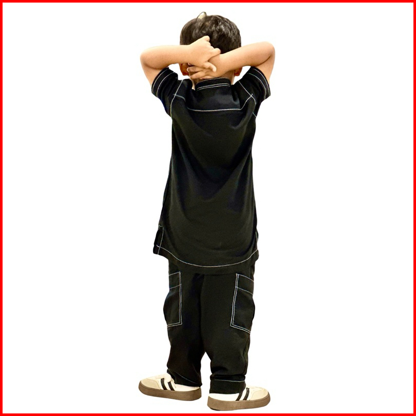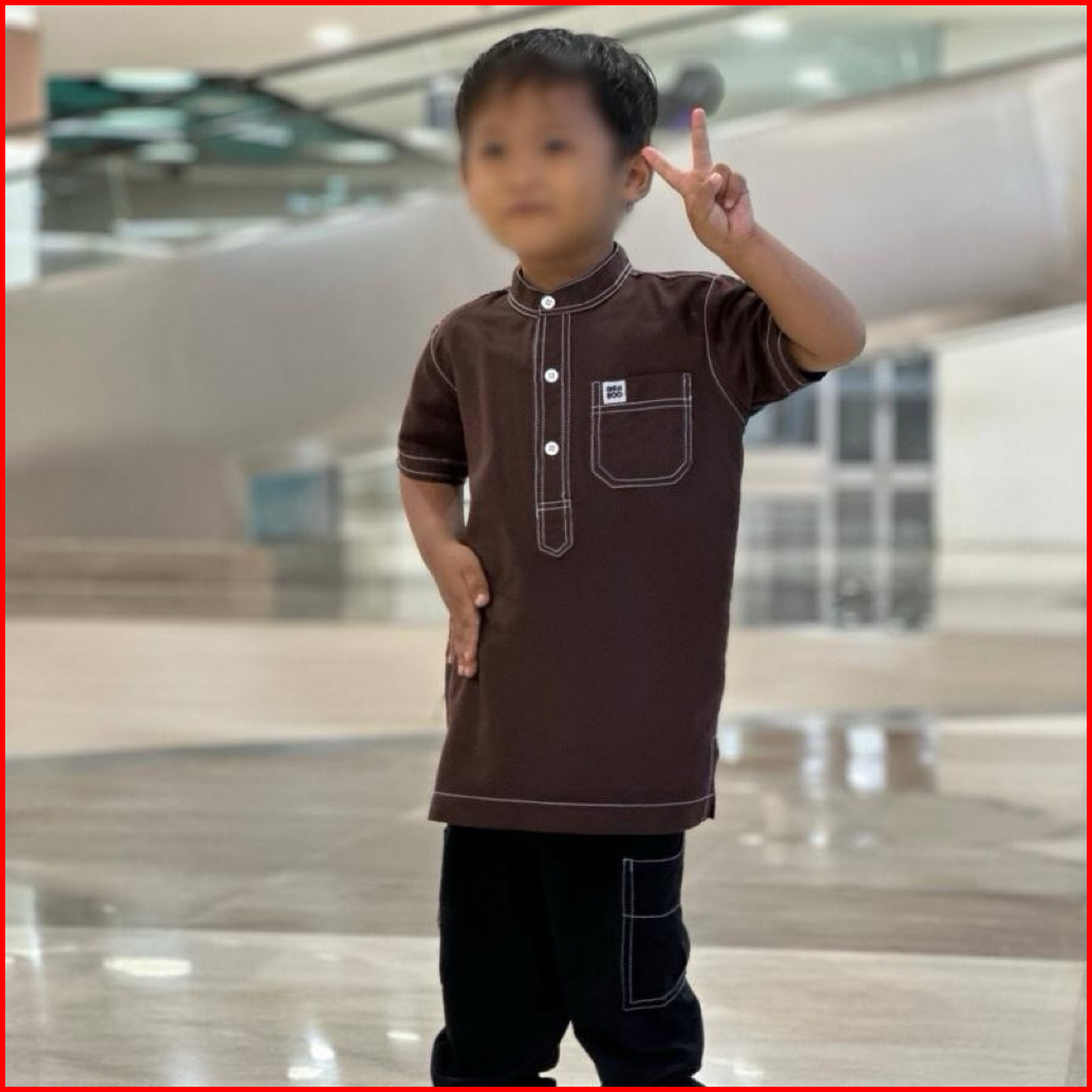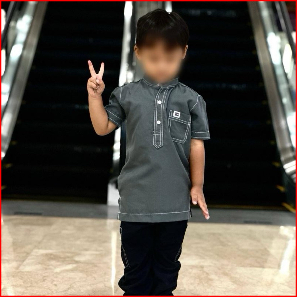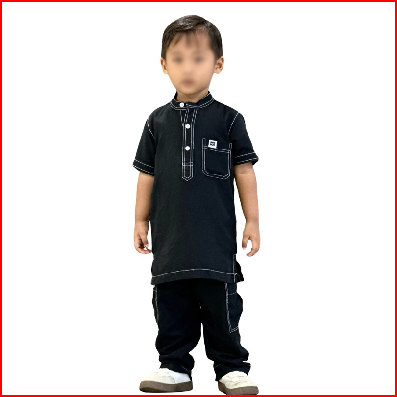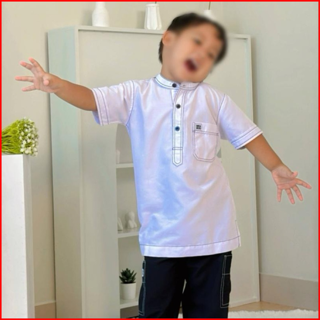 Setelan Koko Lebaran Anak Laki-laki Little Sa A Ibraboo Kurta Simple Polos Atasan Lengan Pendek Baju Anak