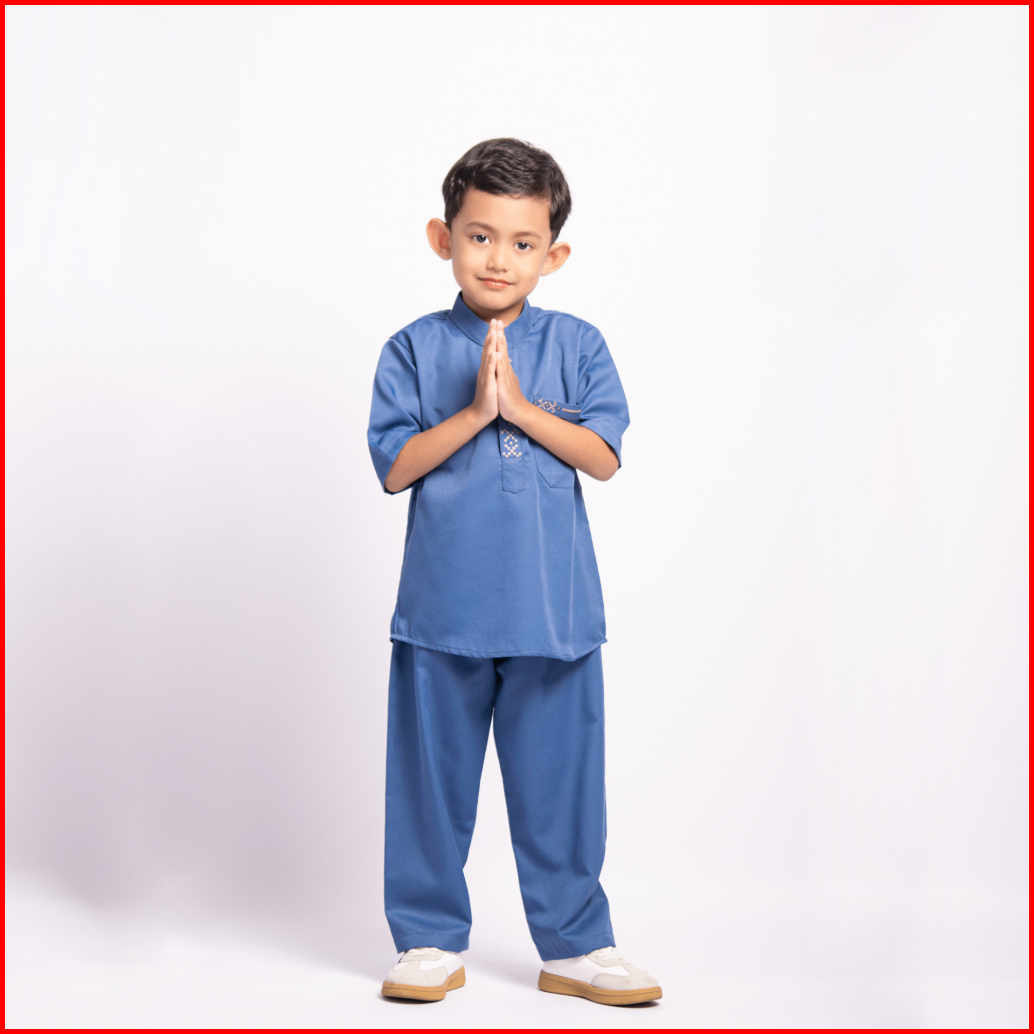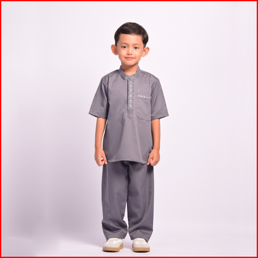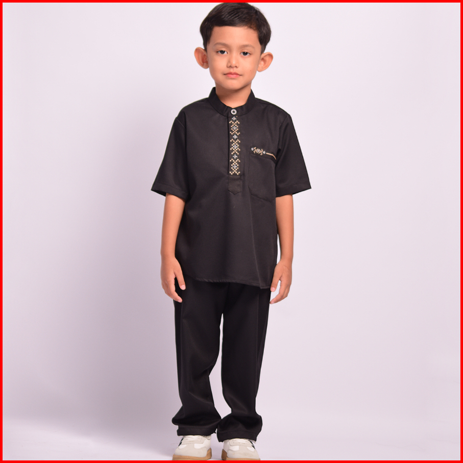 Kawan Muslim - Set Koko Anak Laki-laki Lengan Pendek Motif Bordir Cross Line Kerah Shanghai Baju Muslim Anak Modern Kp8