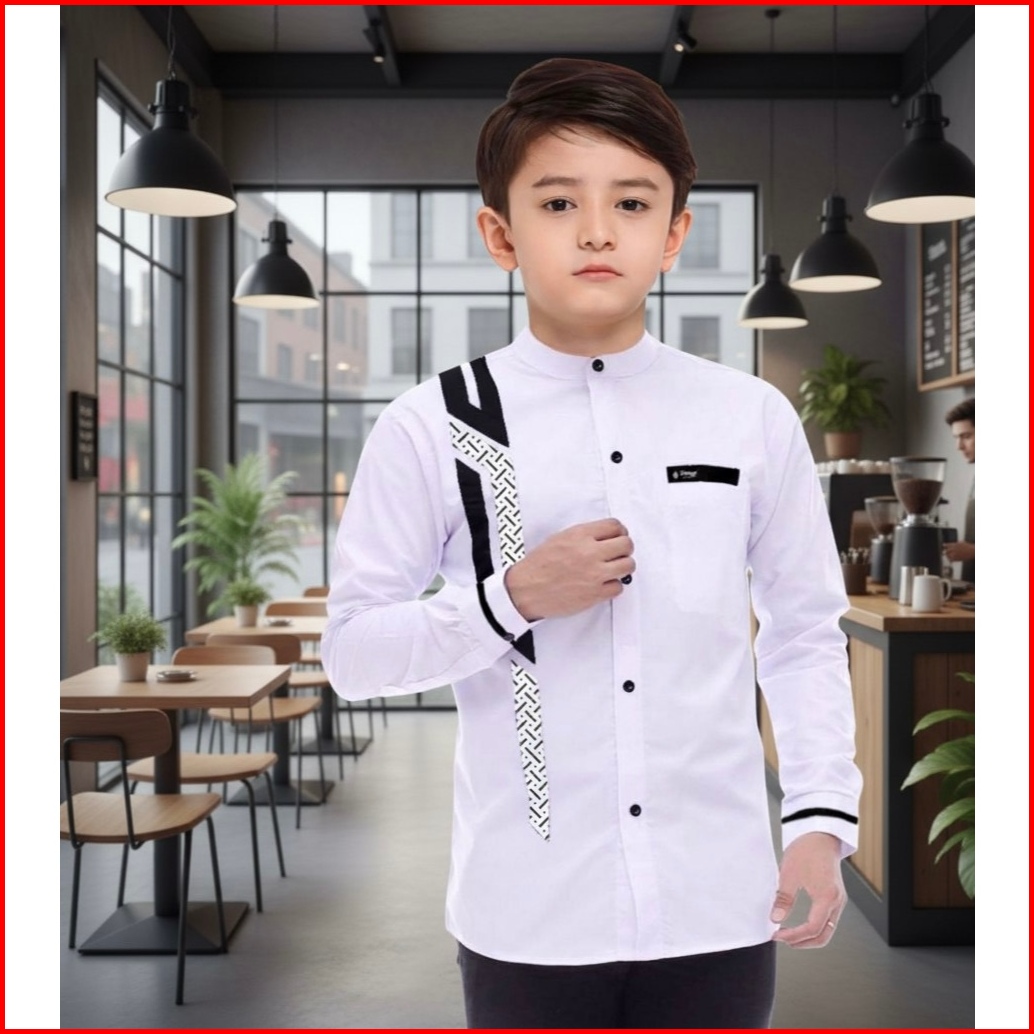 Baju Koko Anak Atasan Muslim Anak Laki Laki Kemeja Koko Anak Lengan Panjang Kombinasi Batik Bahan Adem Usia 5-14 Tahun
