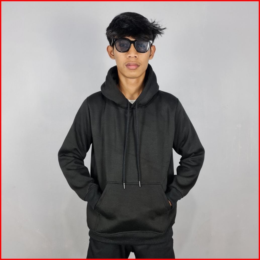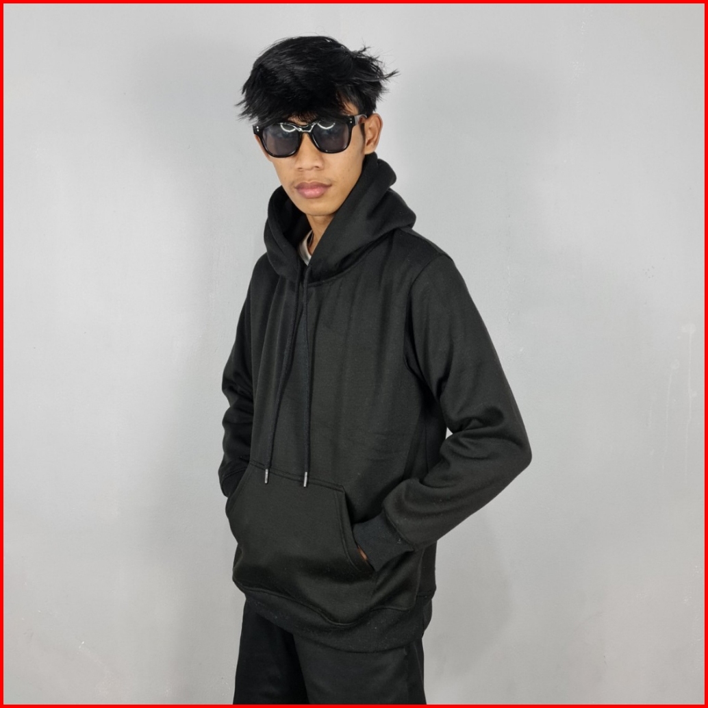 Two One - Hoodie Polos Pria Wanita Katun Flecee Gramasi 280 Premium Hitam