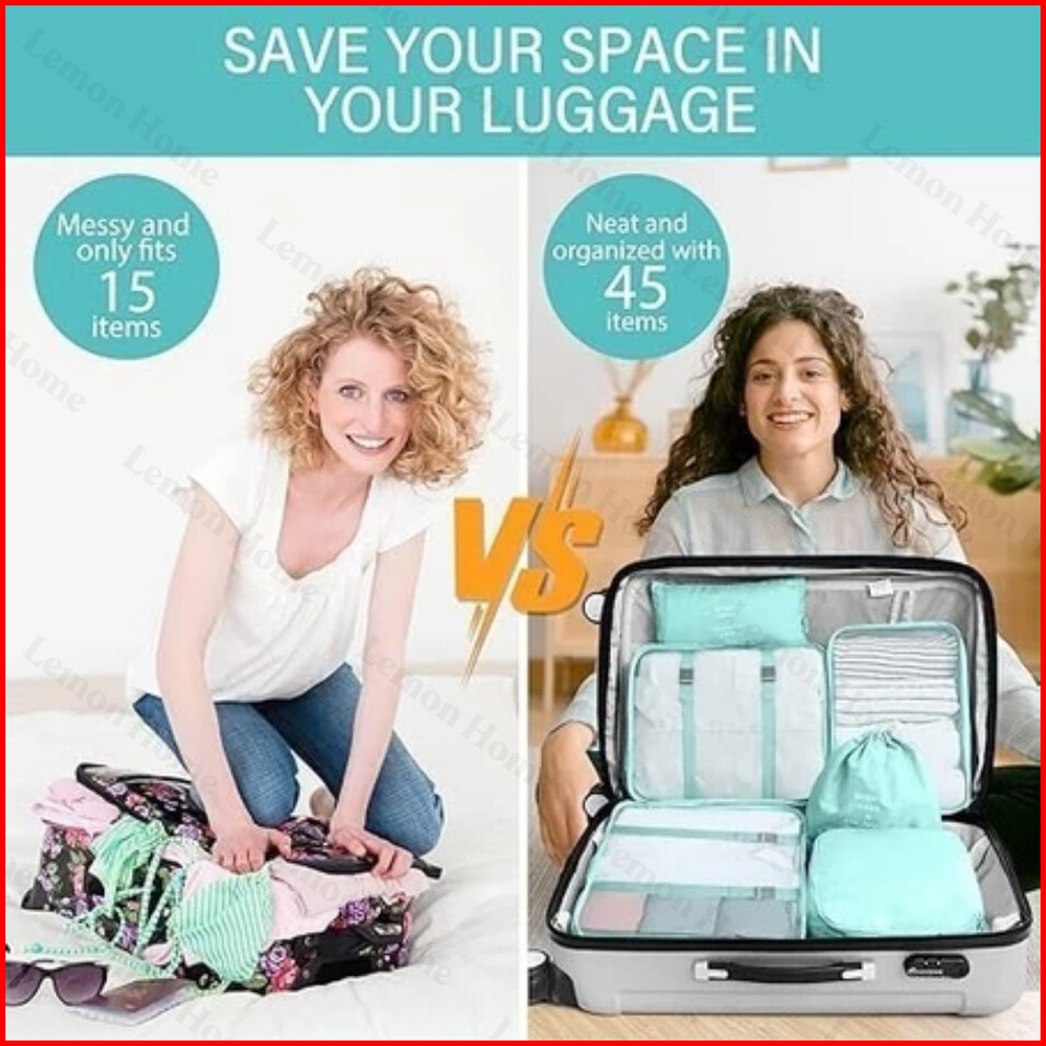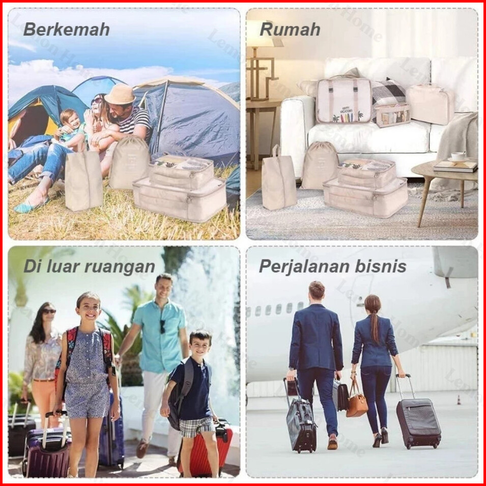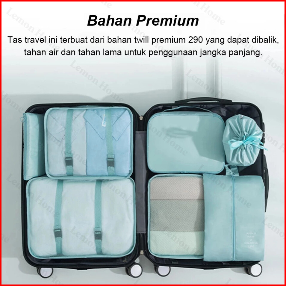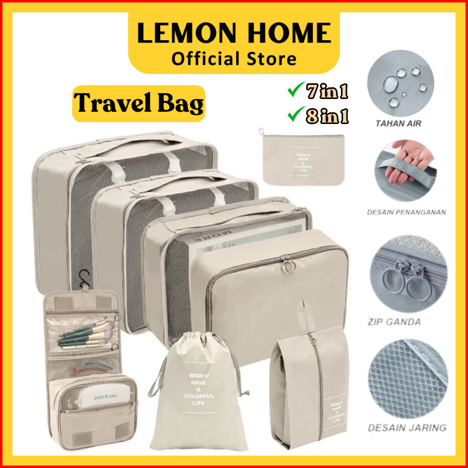 Lemon Home Garansi 1 Tahun 8 In 1 Travel Bag Tas Travel Organizer Bag Pouch Set Storage Tas Penyimpanan Travel Luggage B