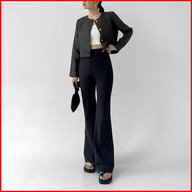 Syakira - Evelyn Flare Pants Highwaist Cutbray Scuba Premium - Celana Adem Melar Panjang