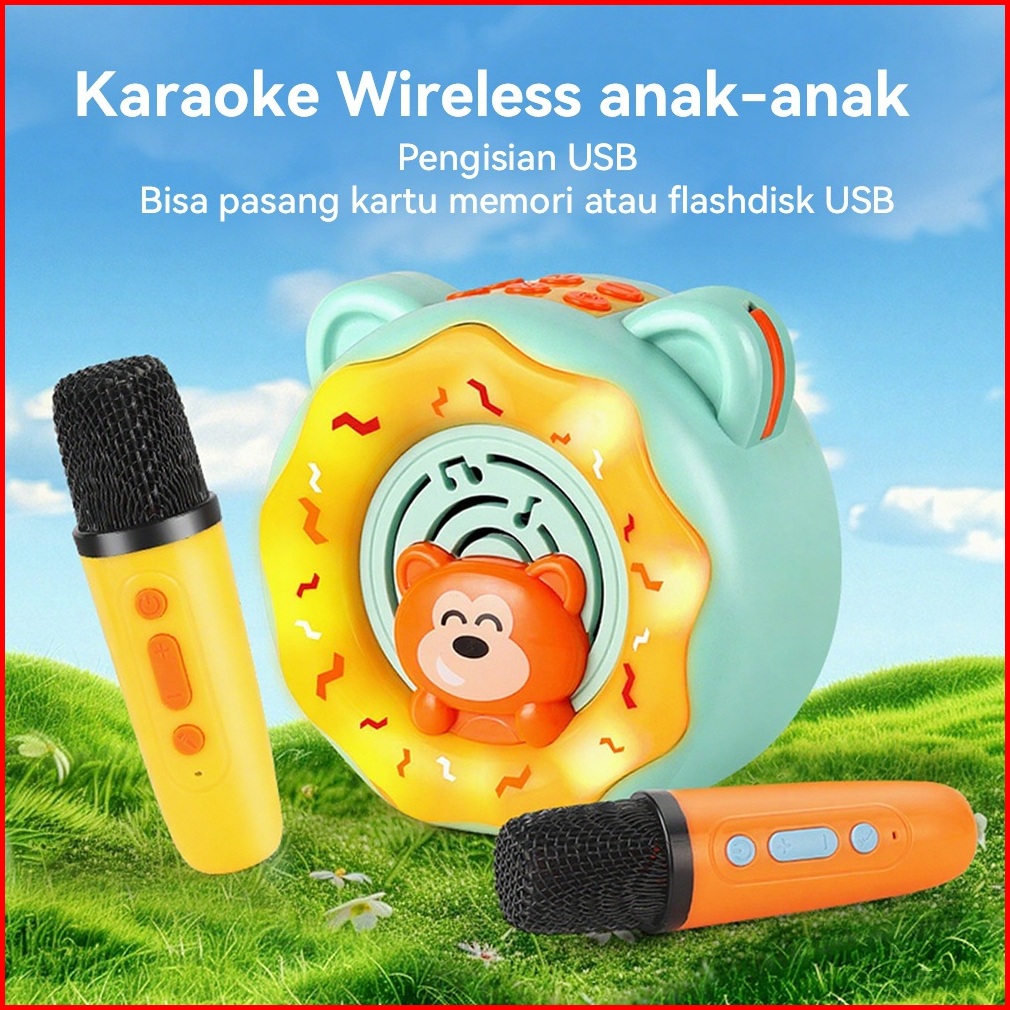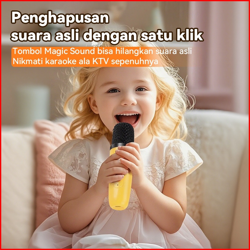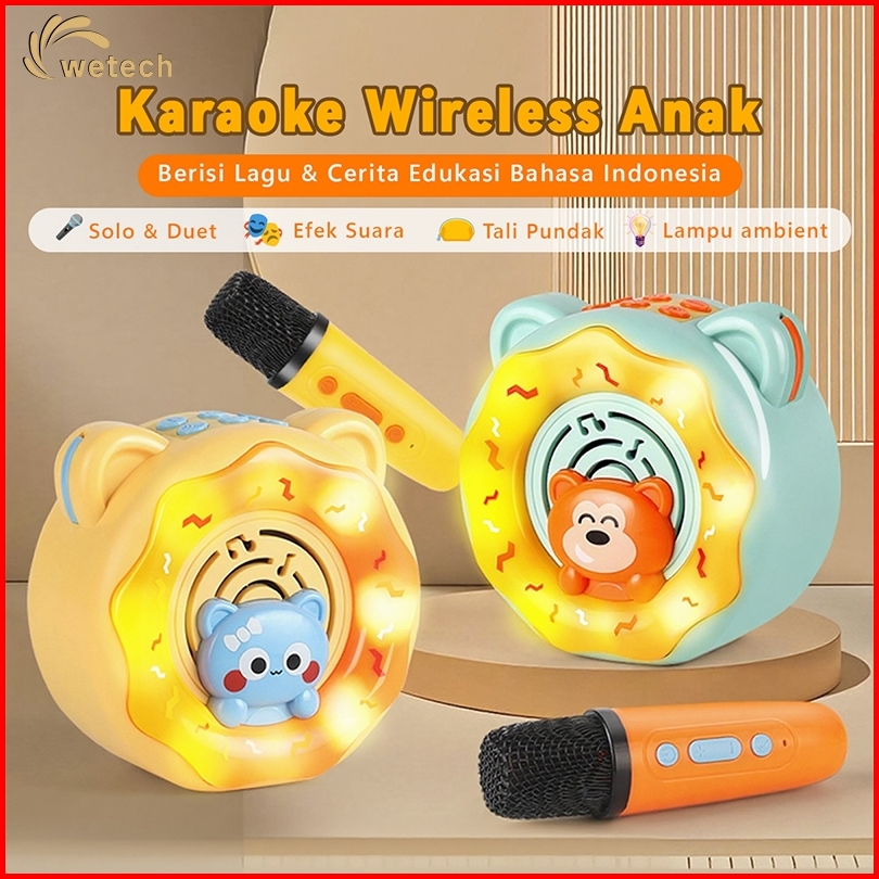 Wetech Mini Microphone Karaoke Wireless Speaker Bluetooth Portable 2 Mic Microfon Lampu Mainan Anak