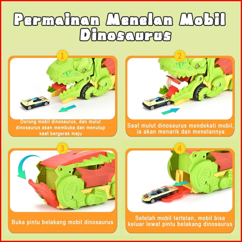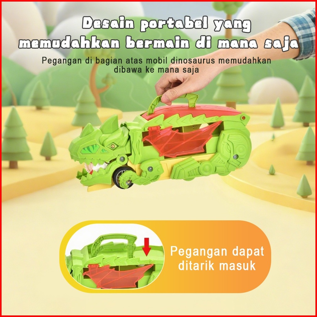 Wetech Dino Truk Mobil Trek Dinosaurus Transformasi 6 Mobil Friction Gesek Penyimpanan Dua Sisi