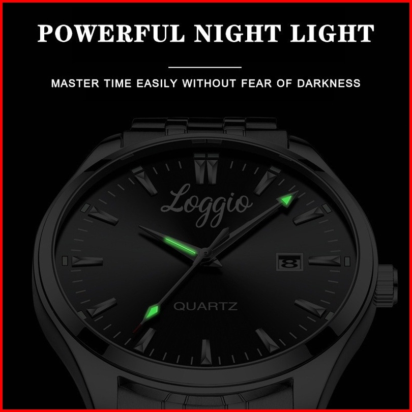 Loggio Jam Tangan Pria Anti Air Original 100 Bisnis Fashion Mewah Stainless Steel Quartz Watch